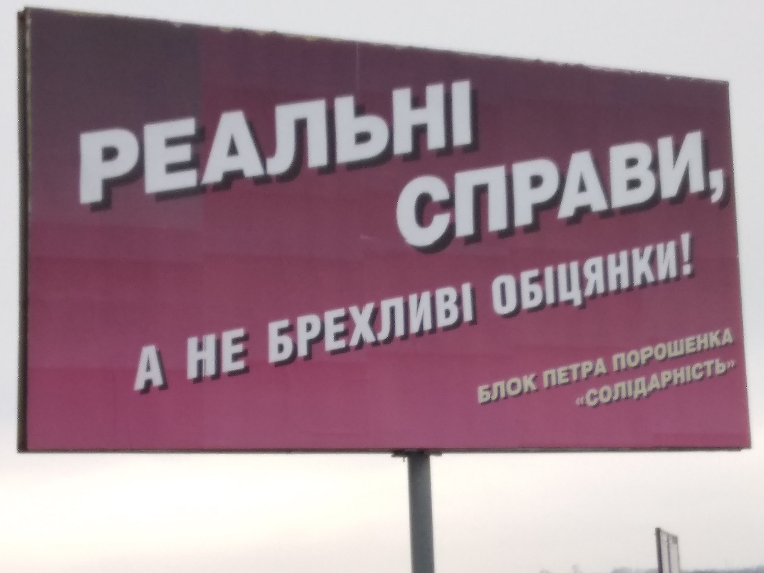 Варто звернути увагу, що такі борди були у період із моменту реєстрації Петра Порошенка як кандидата і до миті, коли у нього не запрацював виборчий фонд. Після чого на їх місці з’явилися уже борди з іншим зображенням та з іменем кандидата, які містять вихідні дані.