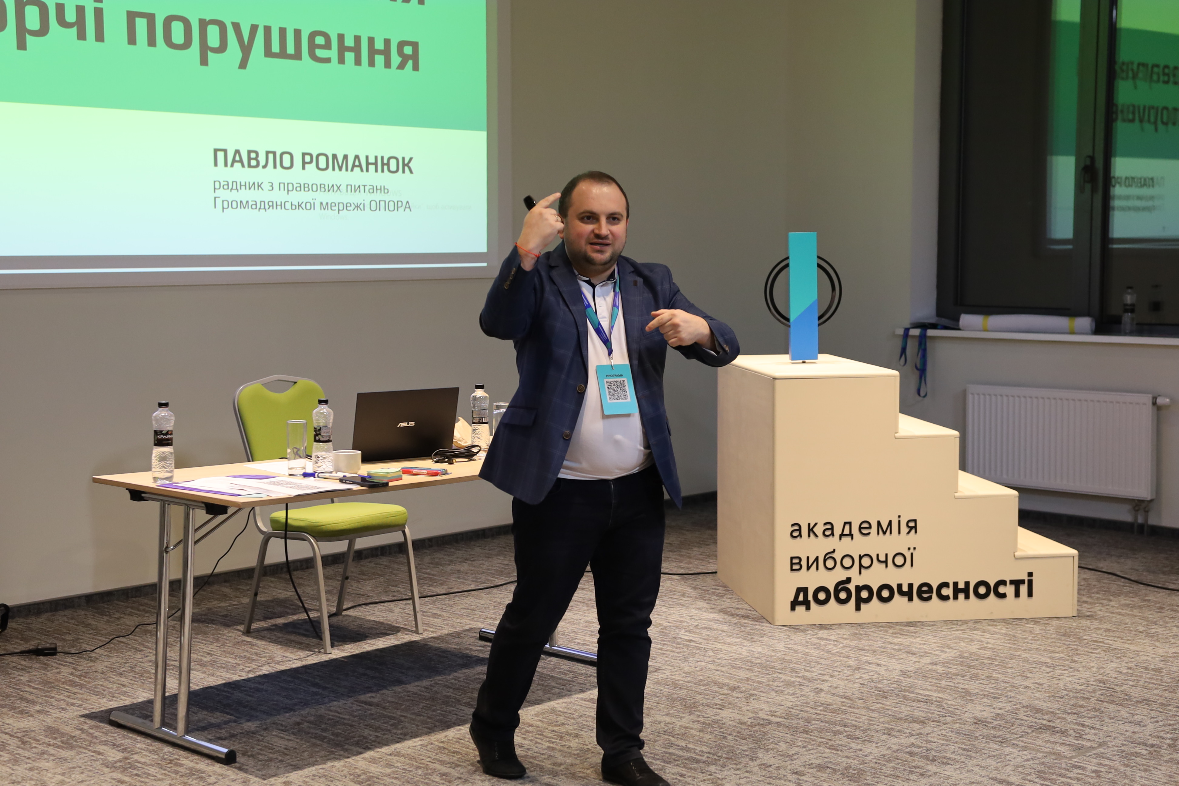 The Academy also featured Vasyl Lutsyk, a lawyer and electoral law expert. His lectures focused on ethical leadership and typical electoral violations. He presented the electoral process as a living system in which justice and trust are shaped primarily by human behavior. The team of lecturers was also joined by Iryna Pavlenko, an expert on political parties, who focused on internal party democracy, transparency, and accountability.
