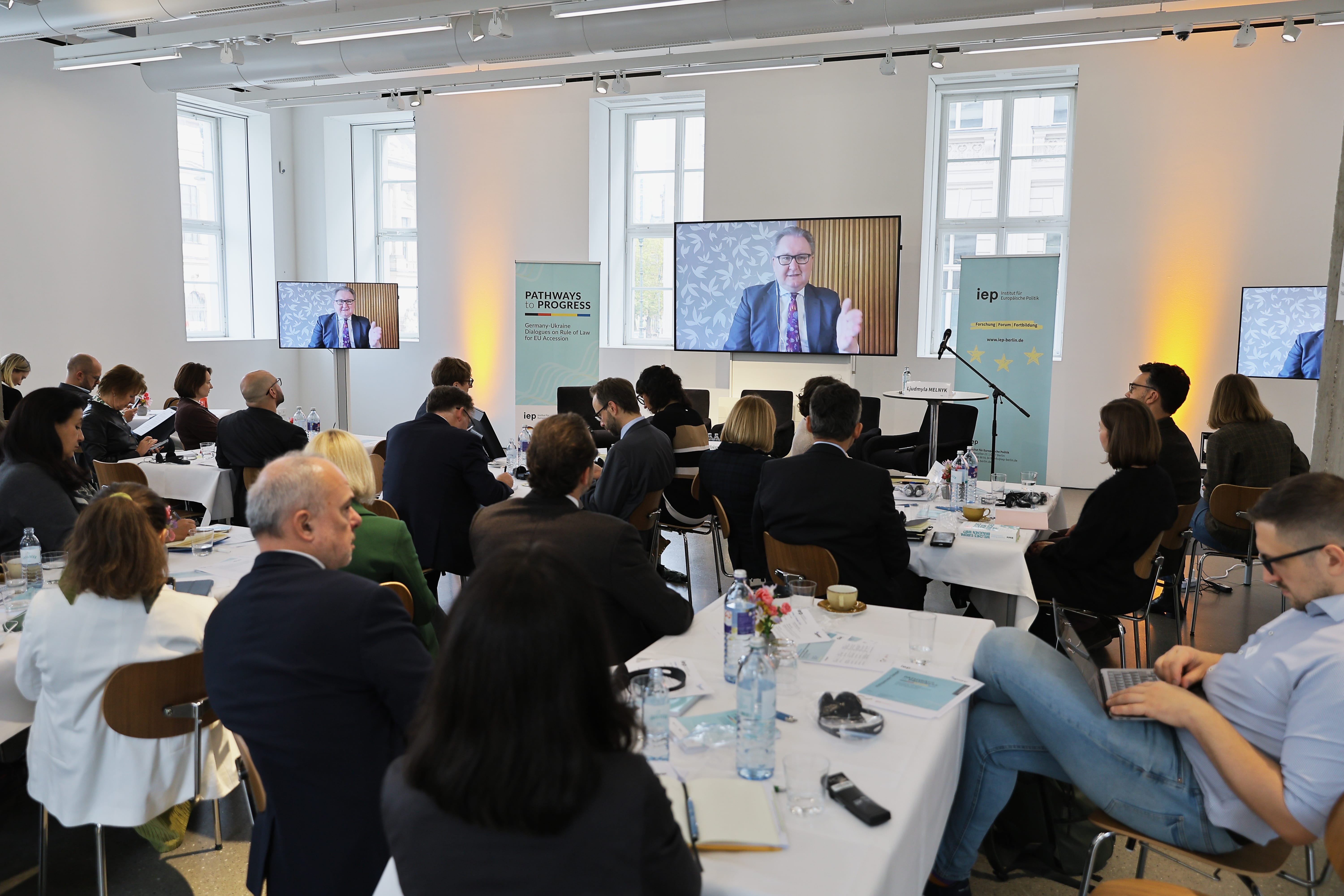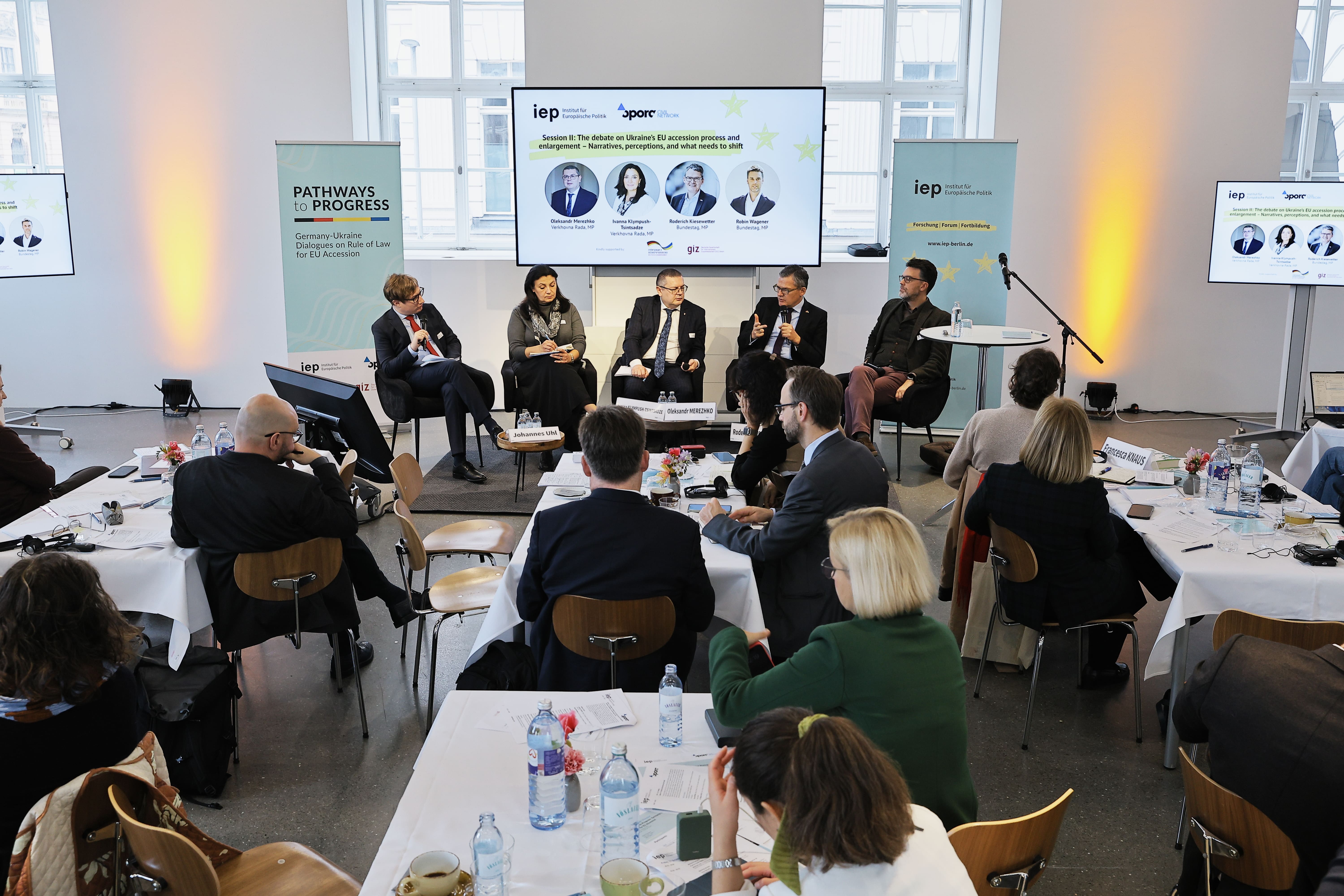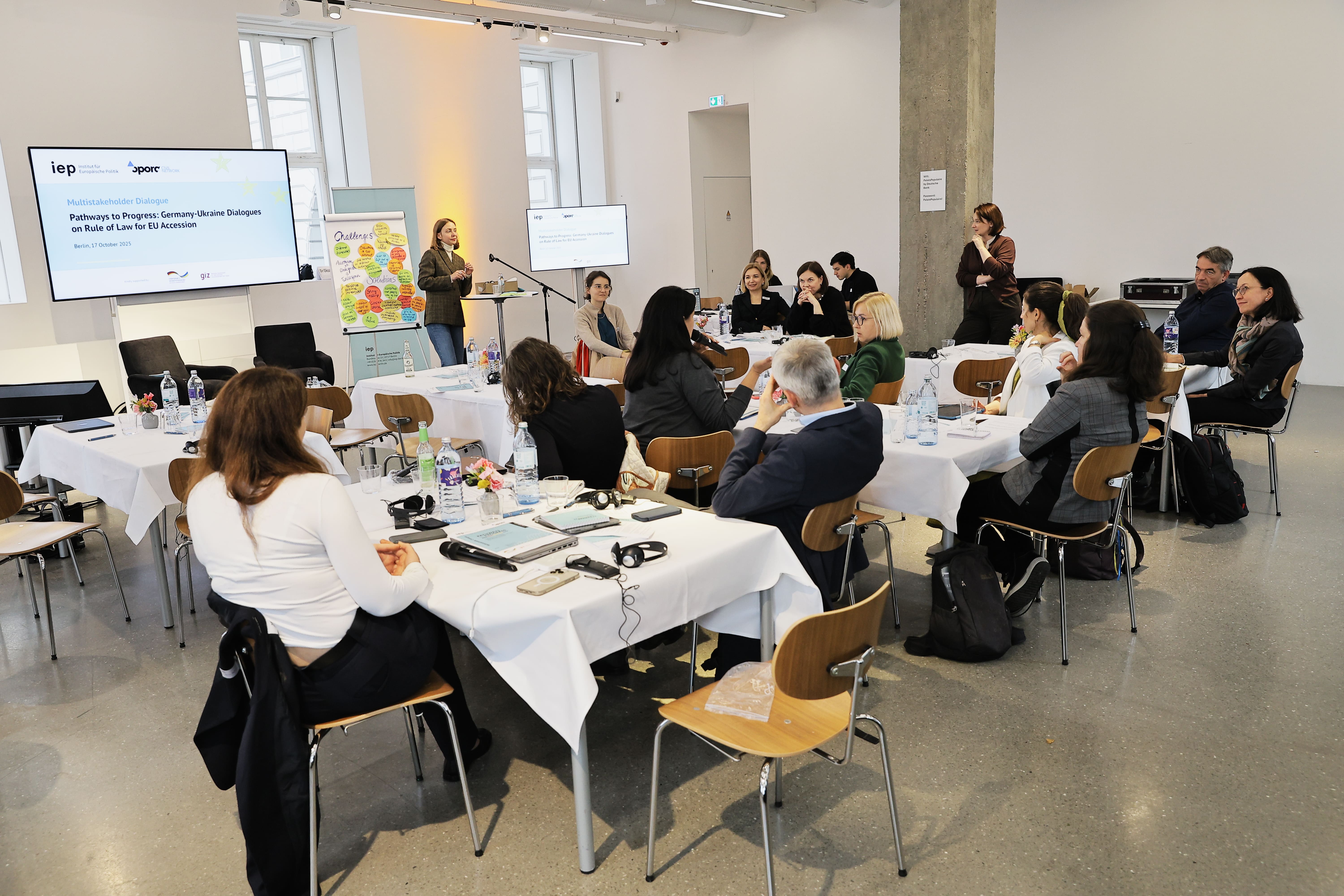 Подія є частиною проєкту «Шляхи до прогресу: Німецько-українські діалоги про верховенство права для вступу до ЄС», що реалізується Інститутом європейської політики (Берлін) у співпраці з Громадянською мережею ОПОРА та фінансується проектом GIZ “Посилення наближення України до ЄС у сфері верховенства права” (3E4U)* за дорученням Федерального міністерства закордонних справ Німеччини.