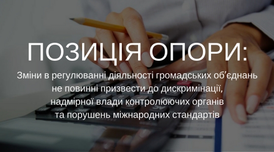 ОПОРА закликає Верховну Раду України, Президента України, Кабінет Міністрів утриматися від запровадження сумнівних новацій у законодавчому регулюванні діяльності громадських організацій. Дискусії про прозоре фінансування громадських організацій, ефективність використання міжнародної технічної допомоги мають призвести до формування чітких, недвозначних і політично нейтральних стандартів прозорості публічного сектору.