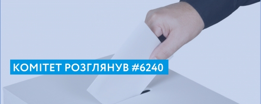 Комітет з питань правової політики та правосуддя розглянув законопроект №6240 щодо виборчих прав вимушених переселенців та трудових мігрантів. Комітет рекомендував Верховній Раді визначатися шляхом голосування.