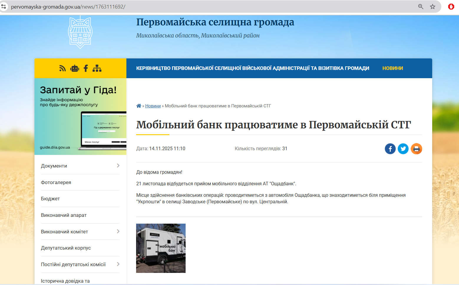 - Громада перебуває під контролем української влади.