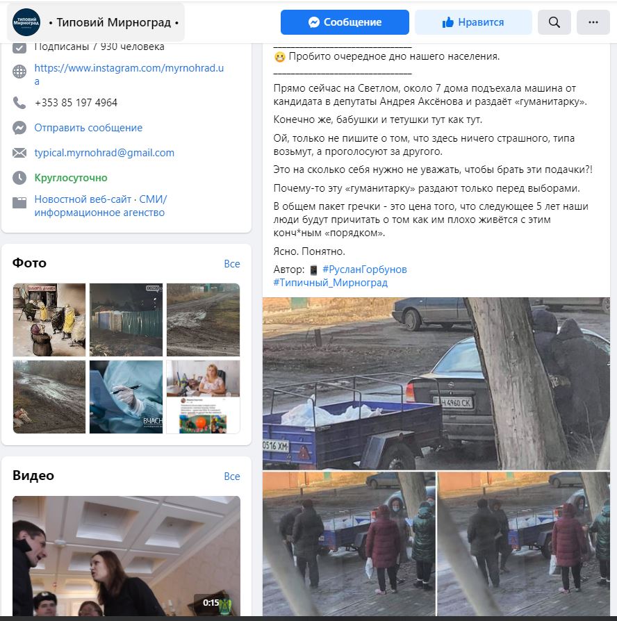 ОПОРА звернулась з питанням до Андрія Аксьонова, чи має він відношення до надання подібної благодійної допомоги. Як тільки буде отримано його коментар, даний матеріал буде доповнено.