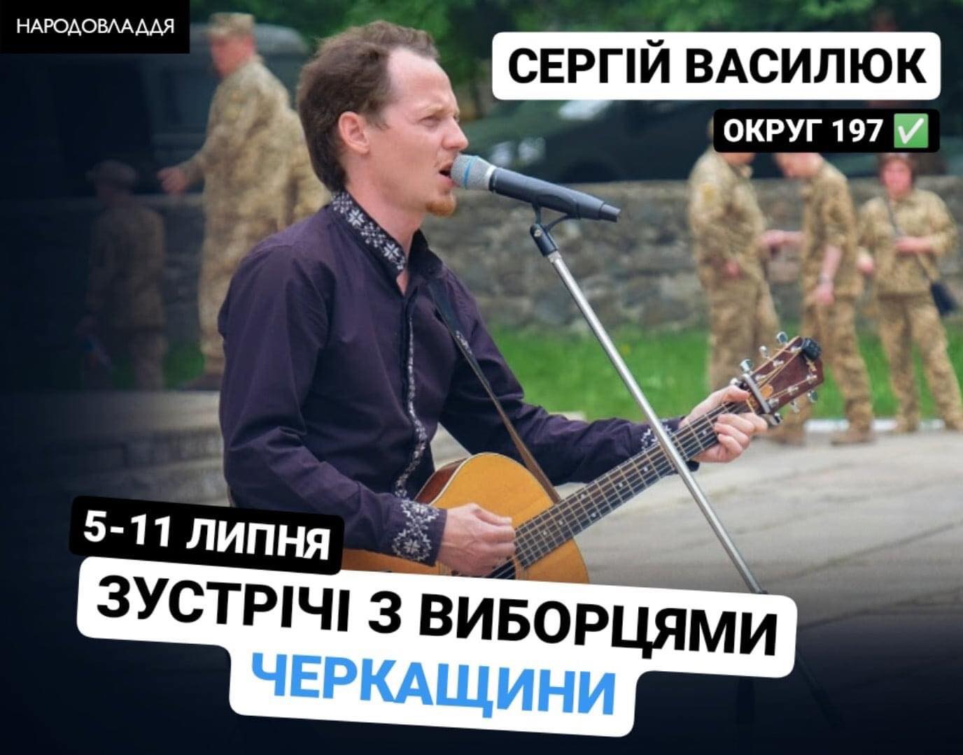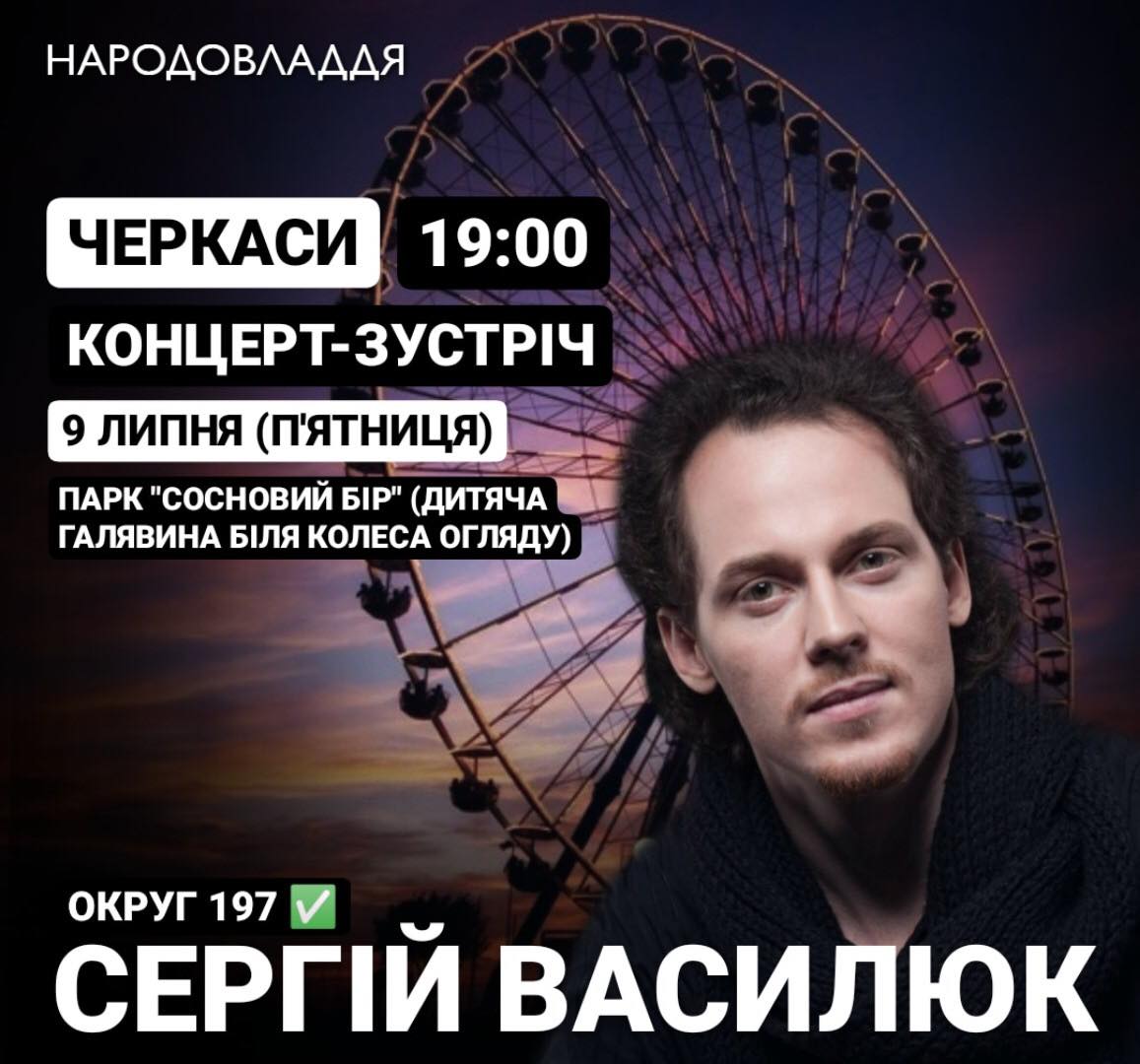 Представники ОПОРИ побували на зустрічі-концерті Сергія Василюка у Черкасах 9 липня. На неї зібралось менше двох десятків містян. У парку “Сосновий бір” активісти партії “Народовладдя” роздавали листівки із короткою біографією потенційного кандидата та закликами підтримати його на виборах, а також із закликами долучатись до партії та підтримати її фінансово. Сам Сергій Василюк зіграв кілька пісень та виступав із промовами.