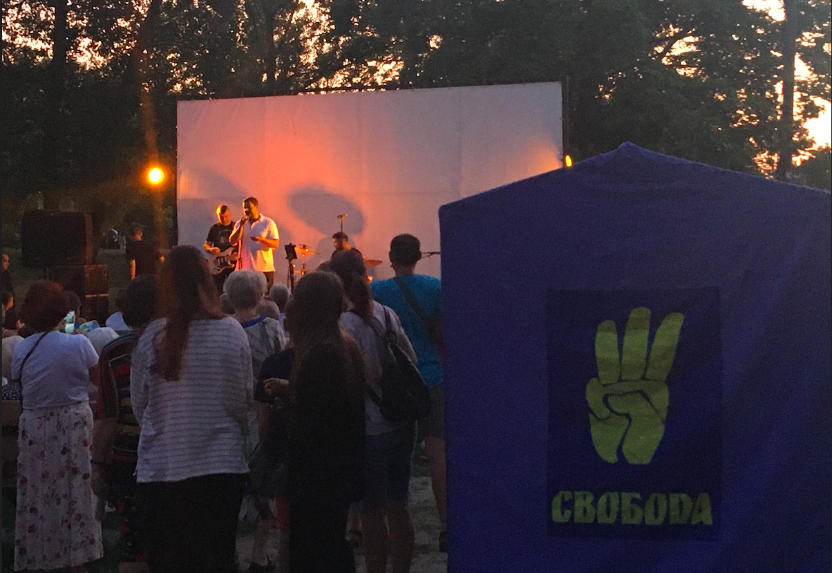 Ще три концерти на окрузі відбулися за ініціативи потенційного кандидата від партії “ВО Свобода” Андрія Іллєнка. Представники ОПОРИ побували на заходах у Набережному парку Канева 11 липня.