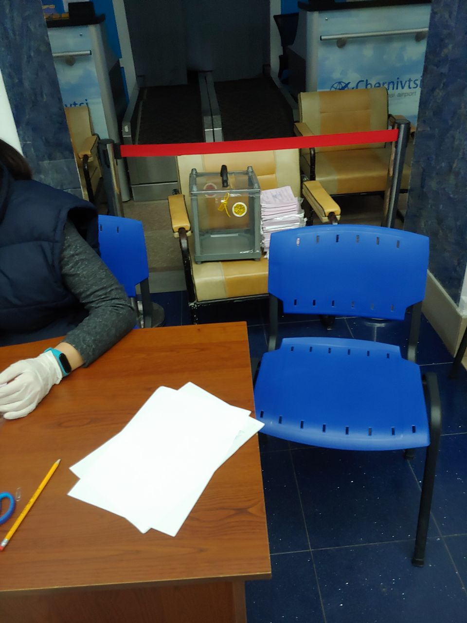 На виборчій дільниці 730465 (КП "Міжнародний аеропорт "Чернівці") спостерігач ОПОРИ зафіксував, що не всі бюлетені були роздані членам комісії на ранковому засіданні.