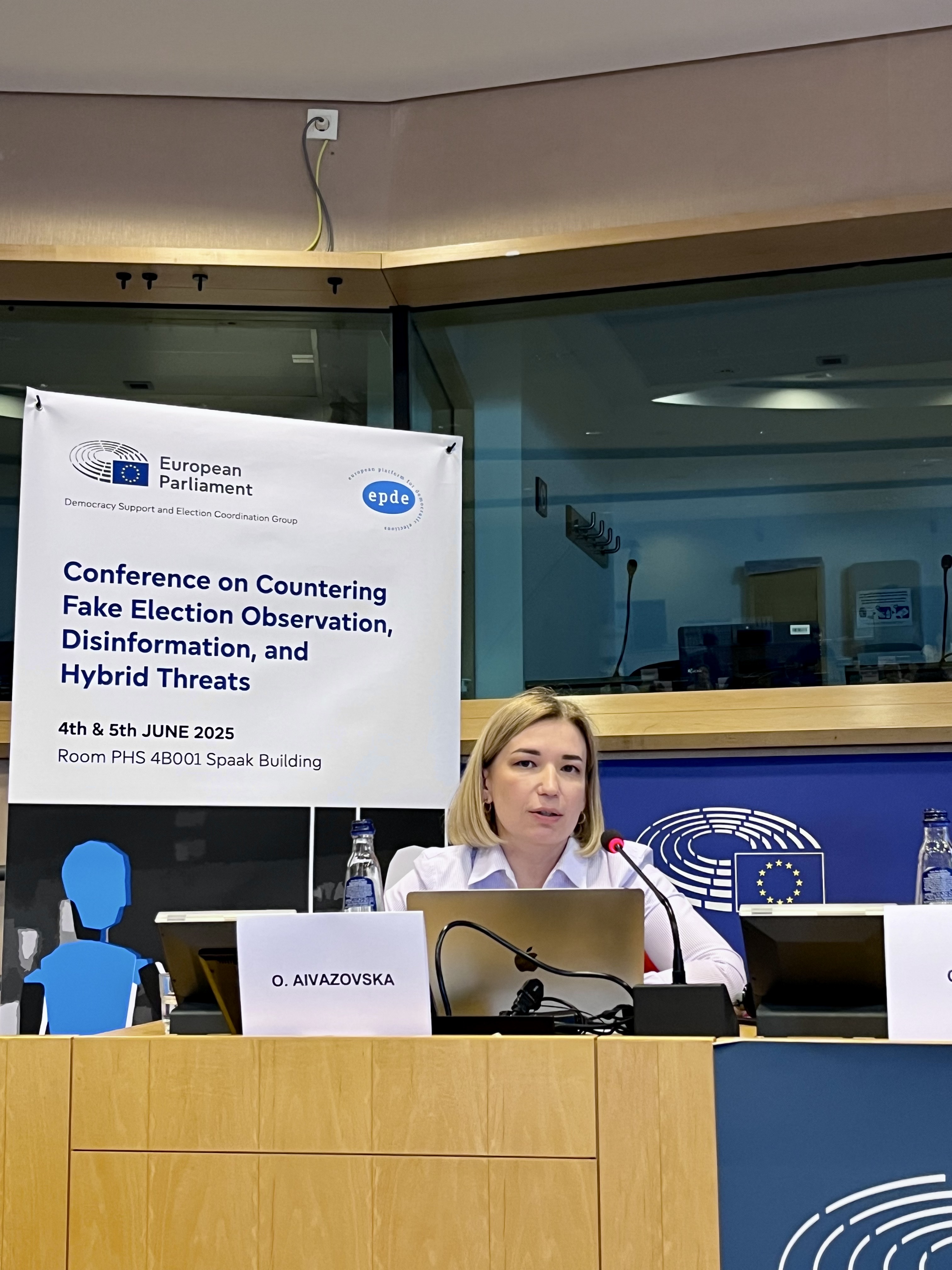 4-5 червня у Брюсселі депутати Європарламенту й експерти з питань виборів обговорювали шляхи протидії політично заангажованому ("фейковому") спостереженню за виборами та пов'язаним із ним дезінформаційним кампаніям. Громадянську мережу ОПОРА як провідну українську організацію незалежного громадського спостереження за виборами на конференції представила голова правління Ольга Айвазовська.