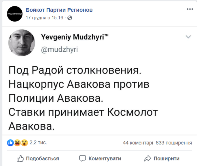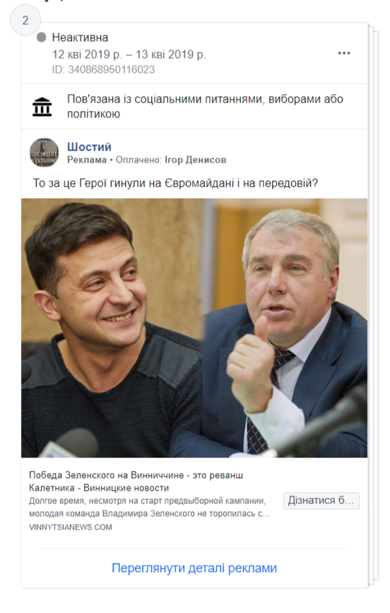 Політична реклама від цієї сторінки публікувалася без дисклеймера – тобто без жодної інформації про замовника чи його контактних даних.