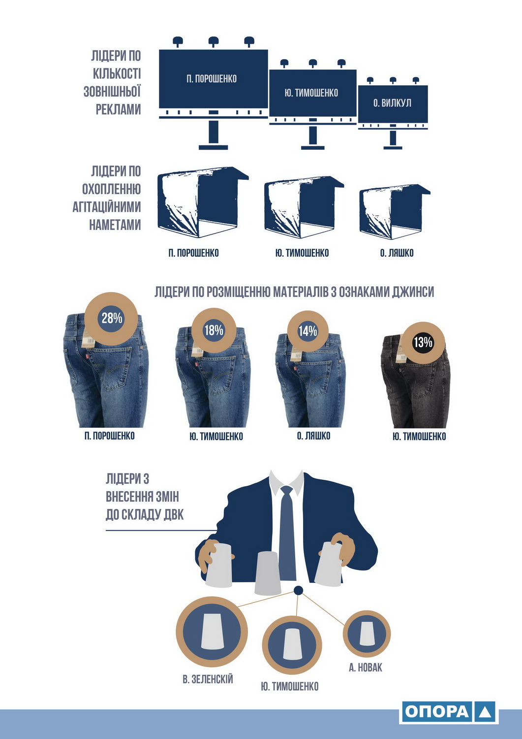 Останні три тижні перед виборами кандидати активно застосовували друковані засоби масової інформації для агітації. Якщо говорити про контент ключових статей, то здебільшого вони стосуються безпекових загроз, падіння рівня життя та обіцянок соціально незахищеним верствам населення, зробленим у достатньо популістському стилі. Лідерами Саме з розміщення матеріалів із ознаками замовності є кандидати на пост Президента Петро Порошенко – 28%, Юлія Тимошенко – 18%, Олег Ляшко – 14%.
