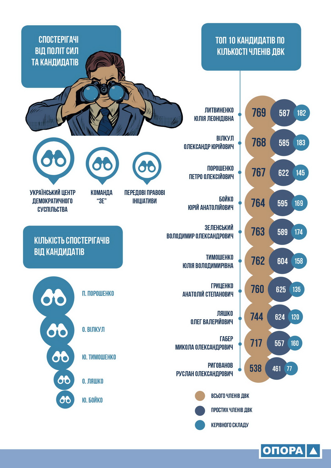 Довідково: Спостереження ОПОРИ спрямовано на незаангажовану оцінку процесу підготовки та проведення виборів, сприяння чесним та вільним виборам, попередження порушень. Із жовтня 2018 року Громадянська мережа ОПОРА проводить масштабну кампанію спостереження за виборами Президента. З моменту офіційного старту виборчої кампанії до спостереження залучено 204 спостерігачі по всій країні. А 31 березня 2019 року та в разі проведення другого туру до них долучаться ще понад 1 500 спостерігачів. Вони також здійснюватимуть паралельний підрахунок голосів (PVT – parallel vote tabulation) з метою отримання результатів виборів, набагато швидших за офіційні та точніших за екзит-поли. Крім того, ми моніторимо використання бюджетних ресурсів у цілях непрямої агітації, навчаємо правоохоронні органи щодо особливостей виборчого процесу, запустили мережу громадських омбудсменів із захисту виборчих прав громадян, оцінили виконання Україною рекомендацій міжнародних місій щодо виборчої реформи та займаємося просвітою виборців.