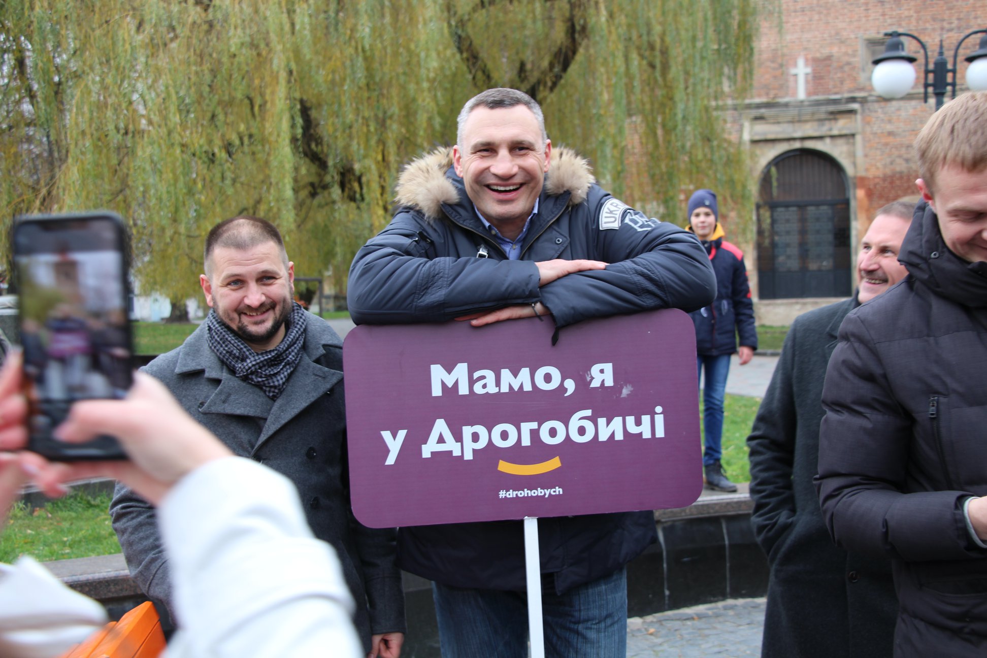 У День Гідності та Свободи, 21 листопада, у Дрогобич завітав міський голова Києва Віталій Кличко. Анонс про приїзд Кличка розмістили на сайті Дрогобицької міської ради об 11:05. У рамках візиту міський голова Києва відвідав Меморіал «Тюрма на Стрийській», Сквер Героїв Небесної Сотні, побував на відкритті таблиці-інсталяції площі Ринок, поспілкувався з мешканцями міста. Зі світлин, які опубліковані на сторінці у соцмережі Дрогобицької міської ради, можна побачити, що Кличка супроводжували керівниця Львівської обласної організації УДАР Оксана Юринець та чинний міський голова, а також кандидат на посаду Дрогобицької міської територіальної громади Тарас Кучма.