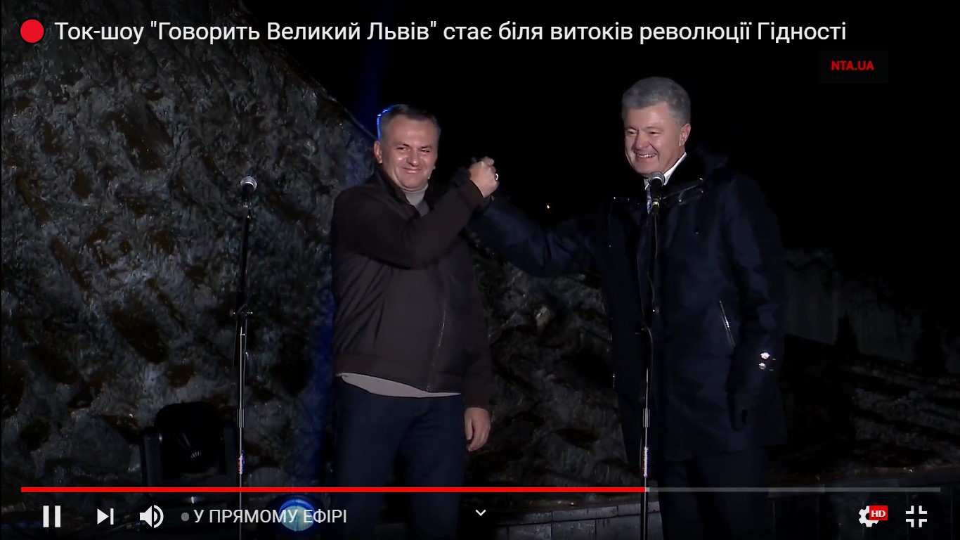 Далі до львів'ян звернувся Олег Синютка. Виступи Порошенка і Синютки плавно стали продовженням проєкту “Говорить Великий Львів” (телеканал “НТА”), який свій телевізійний майданчик розмістив поруч на площі. Участь у телевізійному ток-шоу також взяли народні депутати України від “Європейської Солідарності” Яна Зінкевич, Ахтем Чийгоз, Софія Федина, нардеп восьмого скликання Верховної Ради України Ігор Лапін, волонтер Мирослав Гай, очільник Тернопільської обласної державної адміністрації за часів Порошенка Степан Барна.