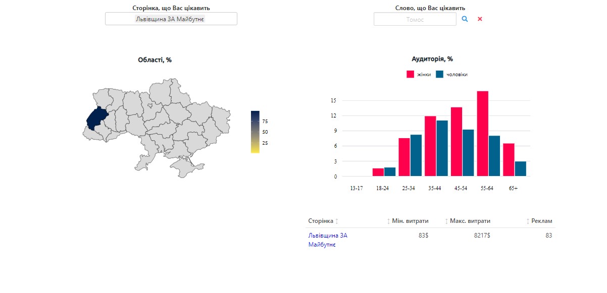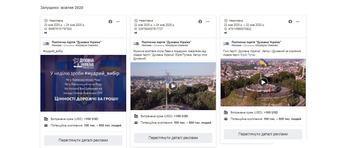 З фінансового документа партії “За майбутнє” важко зрозуміти про оплату реклами у соціальних мережах. З 30 вересня по 28 жовтня (період, який охоплює звіт партії) з пабліку “Львівщина За майбутнє” було оплачено 83 дописи на суму від 83 до 8 217 доларів.