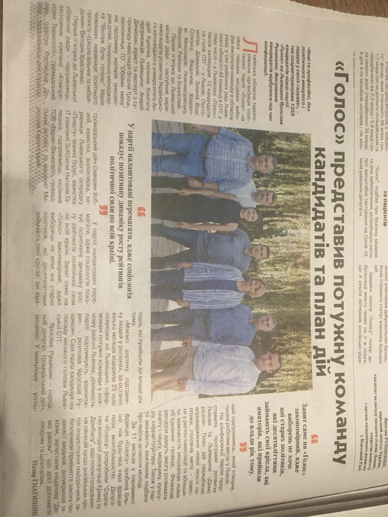 Партія “Голос” подала до міської ТВК звіт з чергових виборів депутатів Львівської обласної ради. Жодні інші звіти неможливо відшукати й на сайті політичної сили. Це означає, що вся кампанія фінансувалася з одного виборчого рахунку. На нього надійшло 5 068 936,55 гривень. Це кошти місцевої організації політичної партії. Всю суму партія витратила на білборди, флаєри, листівки, календарі, публікації у газетах, радіо та телевізійні ролики, публікації у соцмережах, оренду залу.