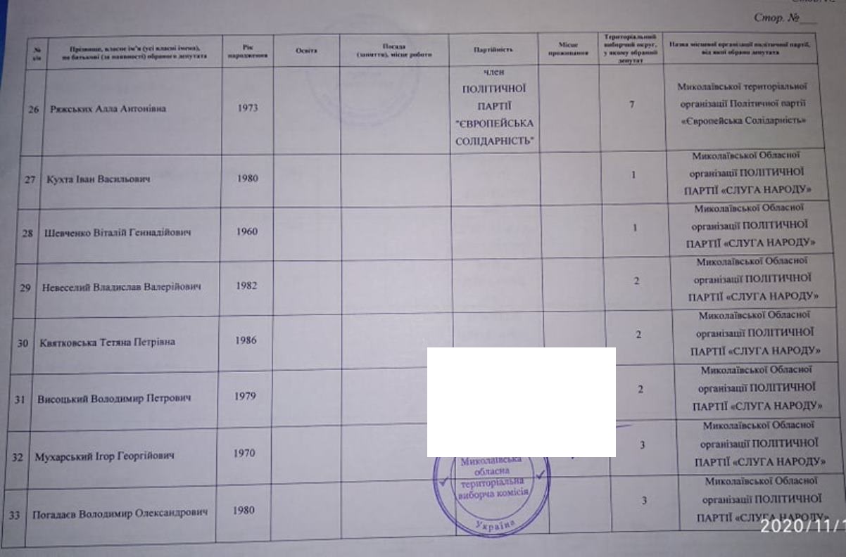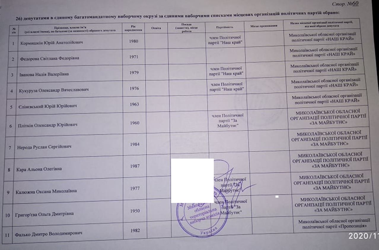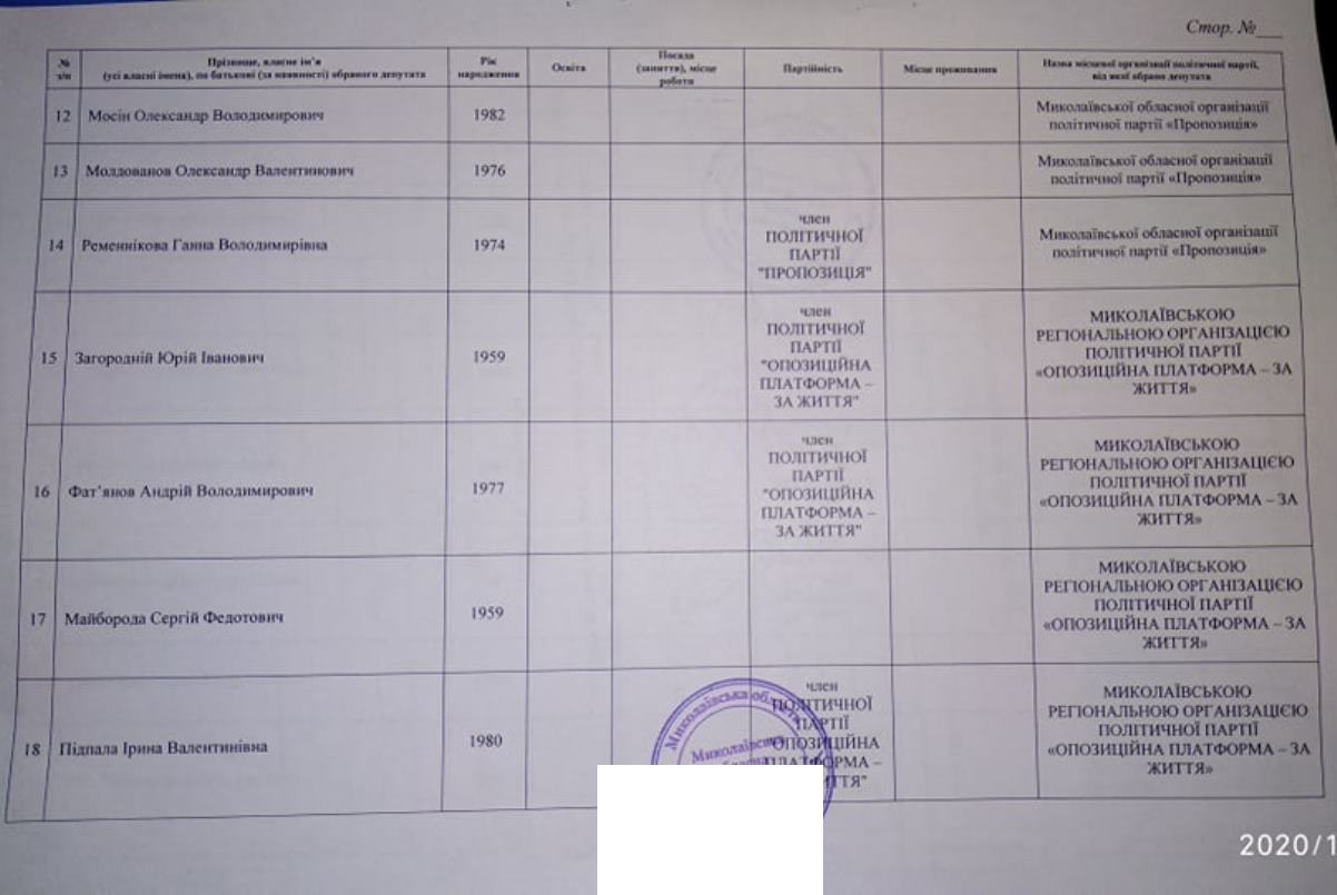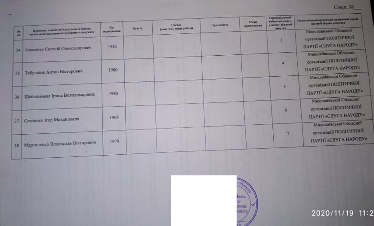 Тож за даними протоколу Миколаївської обласної територіальної виборчої комісії від місцевого осередку партії «ОПЗЖ» у територіальних виборчих округах депутатами обласної ради обрані: