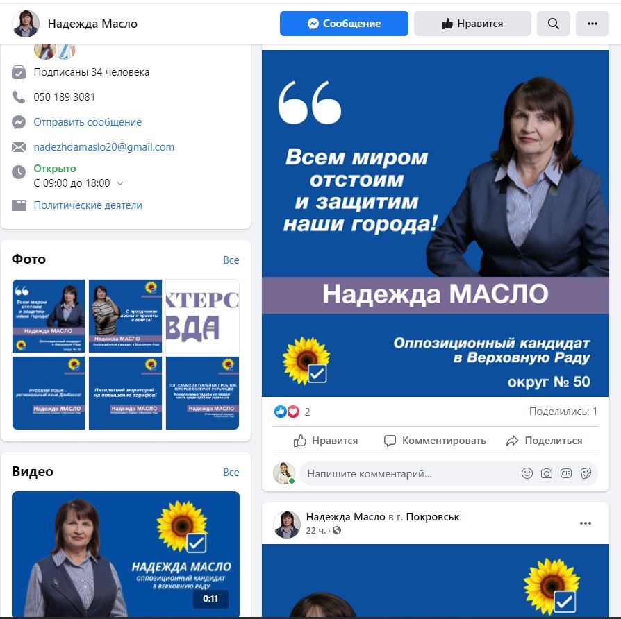 А Надія Масло від «Опозиційного блока» проводила агітацію в соцмережах, використовуючи символіку, схожу з «Опозиційною платформою – За життя» - квітка соняшнику на синьому фоні. Представник Артема Марчевського Олександр Мангуш раніше прокоментував цей факт ОПОРІ таким чином: