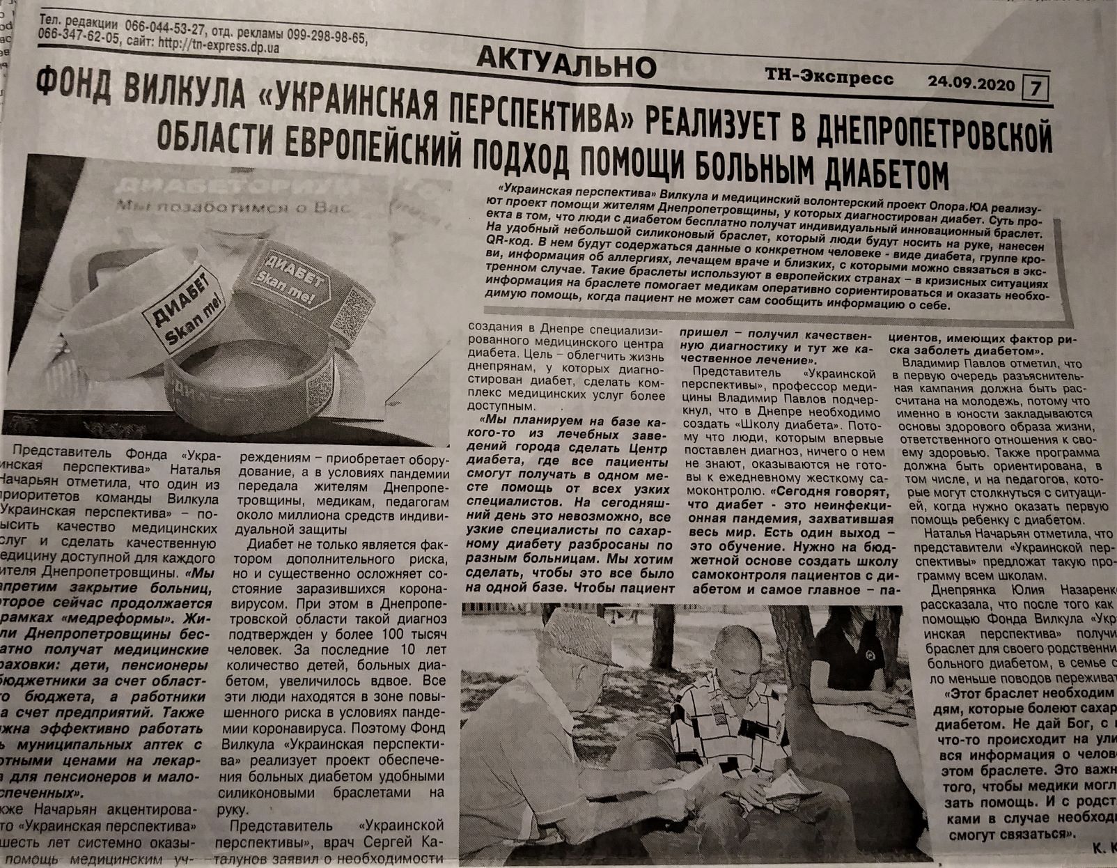 В публікації під назвою «Фонд Вілкула «Українська перспектива» реалізує в Дніпропетровській області європейський підхід допомоги хворим на діабет» розповідається про проєкт Фонду Вілкула. Матеріал не марковано.
