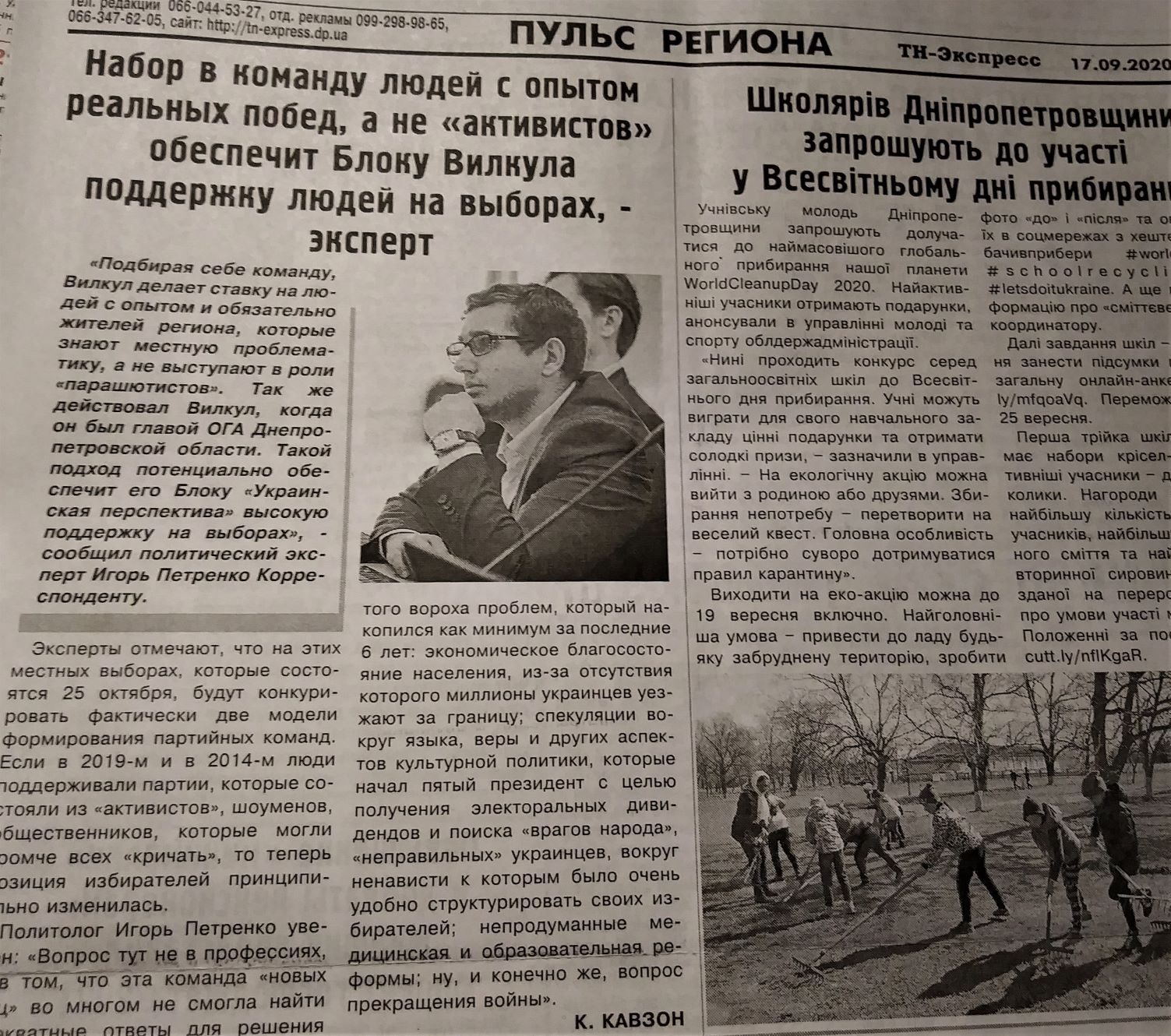 17 вересня в цьому ж виданні зафіксований ще один матеріал: «Набір в команду людей з досвідом реальних перемог, а не «активістів» забезпечить Блоку Вілкула підтримку людей на виборах». В публікації наводиться думка політичного експерта Ігоря Петренка, в якій він прогнозує високий результат на виборах «Блоку Вілкула «Українська перспектива», про інші партії та їхні шанси на виборах не йдеться. Маркування відсутнє.