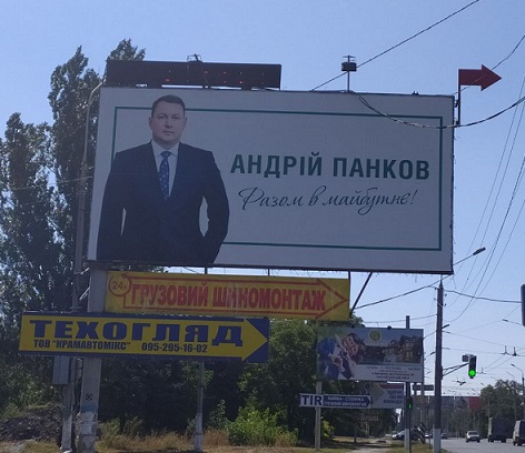 У Краматорську за період з 18 вересня по 1 жовтня з приводу розміщення бордів без зазначених вихідних даних до поліції подано 7 заяв. Так, 18 вересня 2020 року спостерігач ОПОРИ зафіксував у м. Краматорськ по бул. Машинобудівників на території автовокзалу білборд чинного міського голови та зареєстрованого кандидата на посаду міського голови Андрія Панкова. На ньому зображений Андрій Панков та напис "Андрій Панков: Разом у майбутнє!" без вказаних даних щодо замовника друку, тиражу. Краматорська міська територіальна комісія зареєструвала даного кандидата 17 вересня, що затверджено постановою №20 Краматорської міської ТВК.