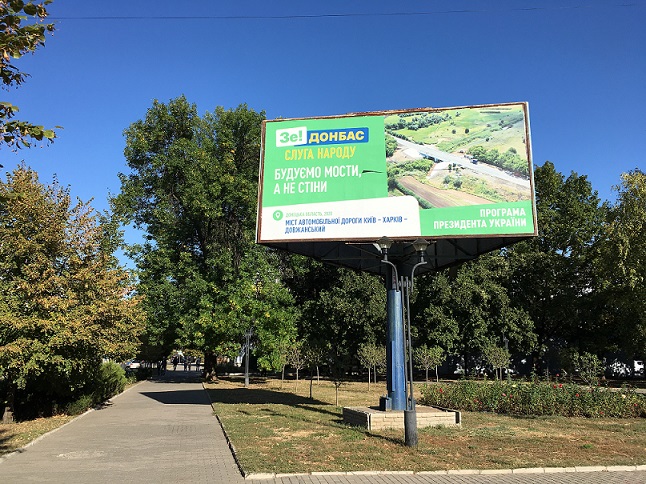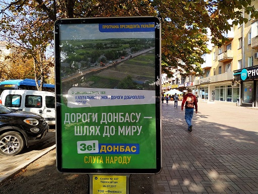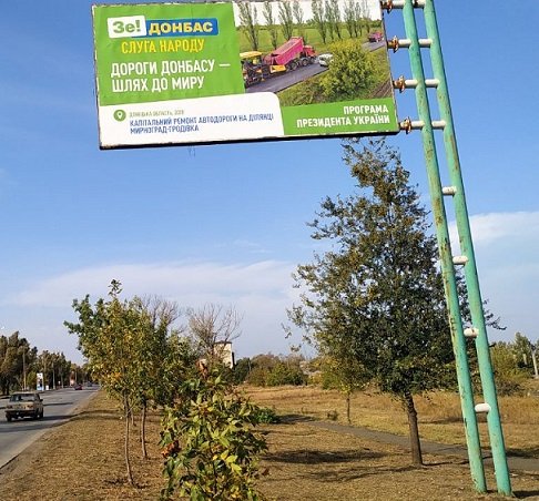 У м. Дружківці по вул. Соборній також зафіксовано борд із розміщенням агітаційних матеріалів без вихідних даних на користь політичної партії "Слуга народу", яка є суб'єктом виборчого процесу, із написом: "Зе! Донбас Слуга народу. Дороги Донбасу - шлях до миру. Донецька область, 2020. Реконструкція траси Київ – Харків - Довжанський. Програма президента України". Зазначимо, що раніше ОПОРА повідомила, що у Донецькій області зафіксовано рекламу політичної партії «Слуга народу», на якій присутні написи з ознаками піару на бюджетних коштах.