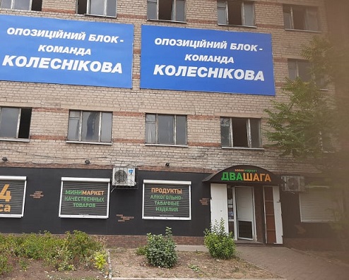 Подано заяву до поліції з приводу розміщення бордів з написом "Опозиційний блок – команда Колеснікова" без вихідних даних у м. Костянтинівці на фасаді будівлі по проспекту Ломоносова.