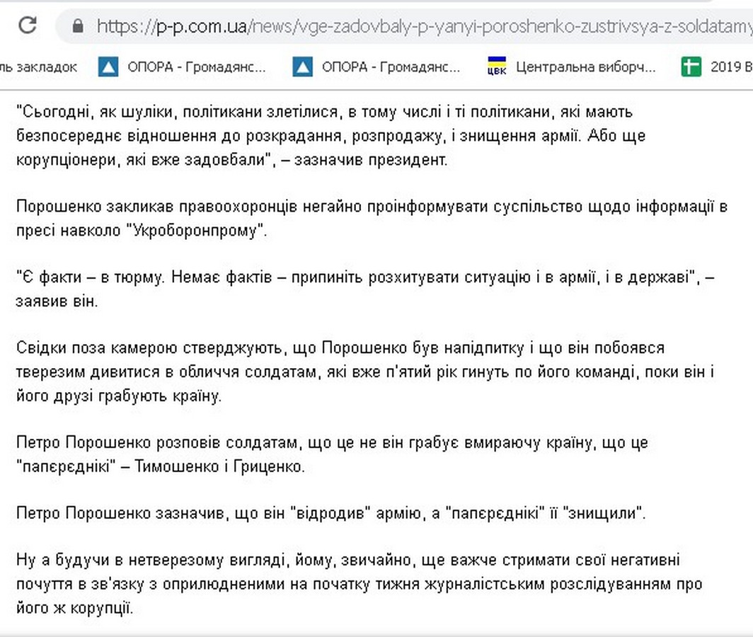 У газеті «Волинські новини» за 7 березня виявлено статтю під назвою «Перший тюремний строк, а не другий президентський» з негативною інформацією про Петра Порошенка. Матеріал опублікований в рубриці «Корупційний скандал». У публікації йдеться про корупційний скандал довкола «Укроборонпрому» та згадують Порошенка як чинного Президента. Однак завершена публікація словами «Якщо не зупинити це зараз, то можна лише уявити, що робитиме Порошенко у разі, якщо виграє вибори».