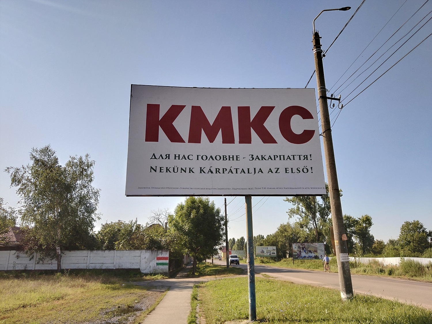 Крім цього, у Берегові спостерігачі зафіксували білборди політичної сили Партія угорців України «КМКС». На плакаті розміщена назва партії та напис – «Для нас головне – Закарпаття!». Ймовірно, це саме речення продубльоване на білборді й угорською мовою. Згідно з вихідними даними, які розміщені на плакаті, друк замовила громадська організація «Товариство угорської культури Закарпаття». Друк здійснив ФОП Погар Т. Ю., наклад – 40 примірників, відповідальний за друк – Брензович В. І.. Такі самі борди спостерігачі зафіксували й в Ужгороді, Мукачеві та Тячівському районі. Сітілайти із таким самим дизайном та написами з’явилися у Виноградові. Вихідні дані такі ж самі, які на білбордах цієї політсили, однак тираж – менший: всього чотири екземпляри.