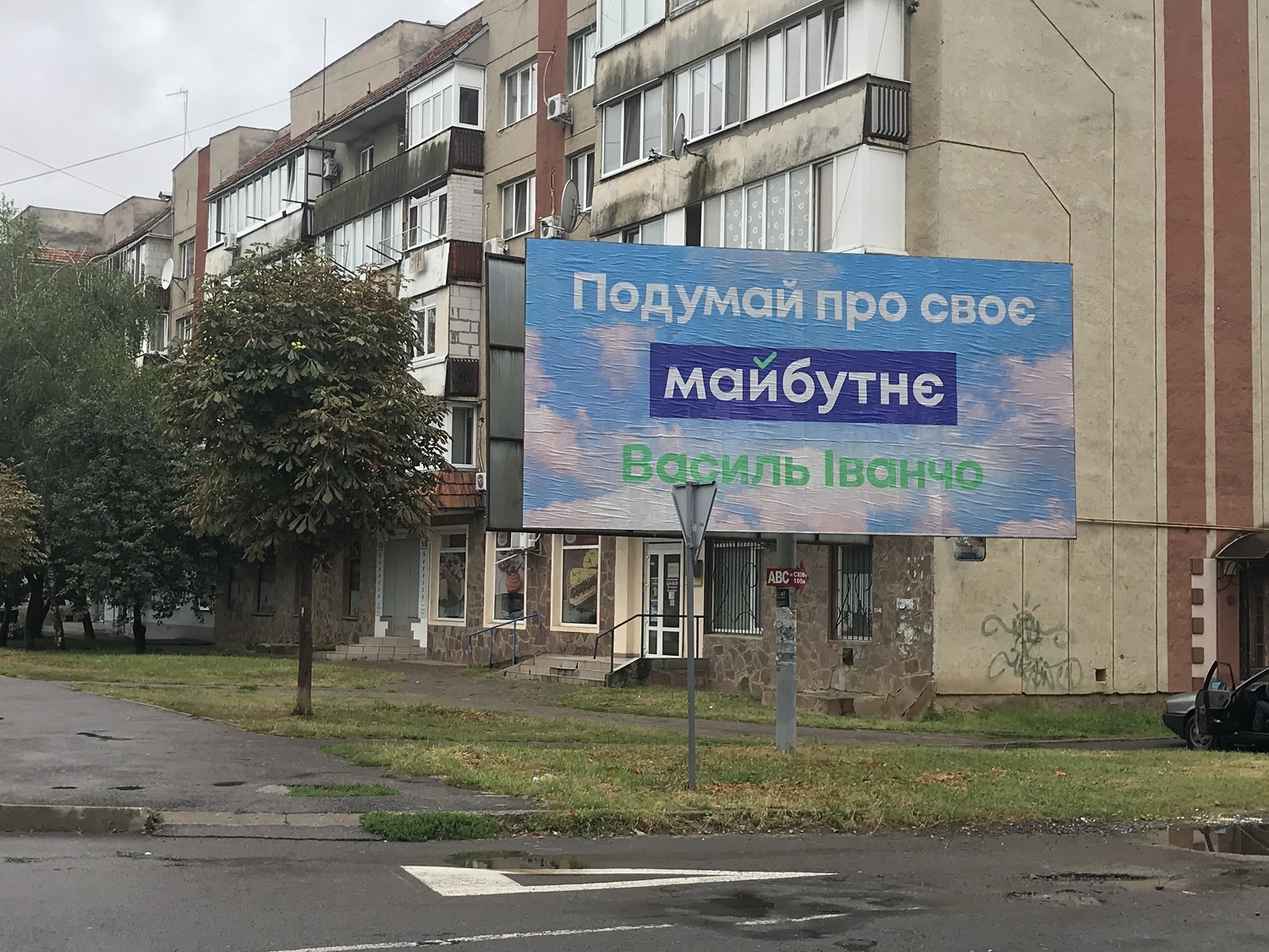 Також у Мукачеві розміщені білборди потенційного кандидата Василя Іванча із написом «Подумай про своє майбутнє».