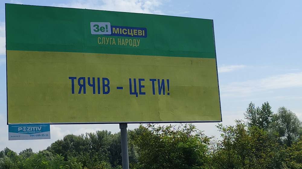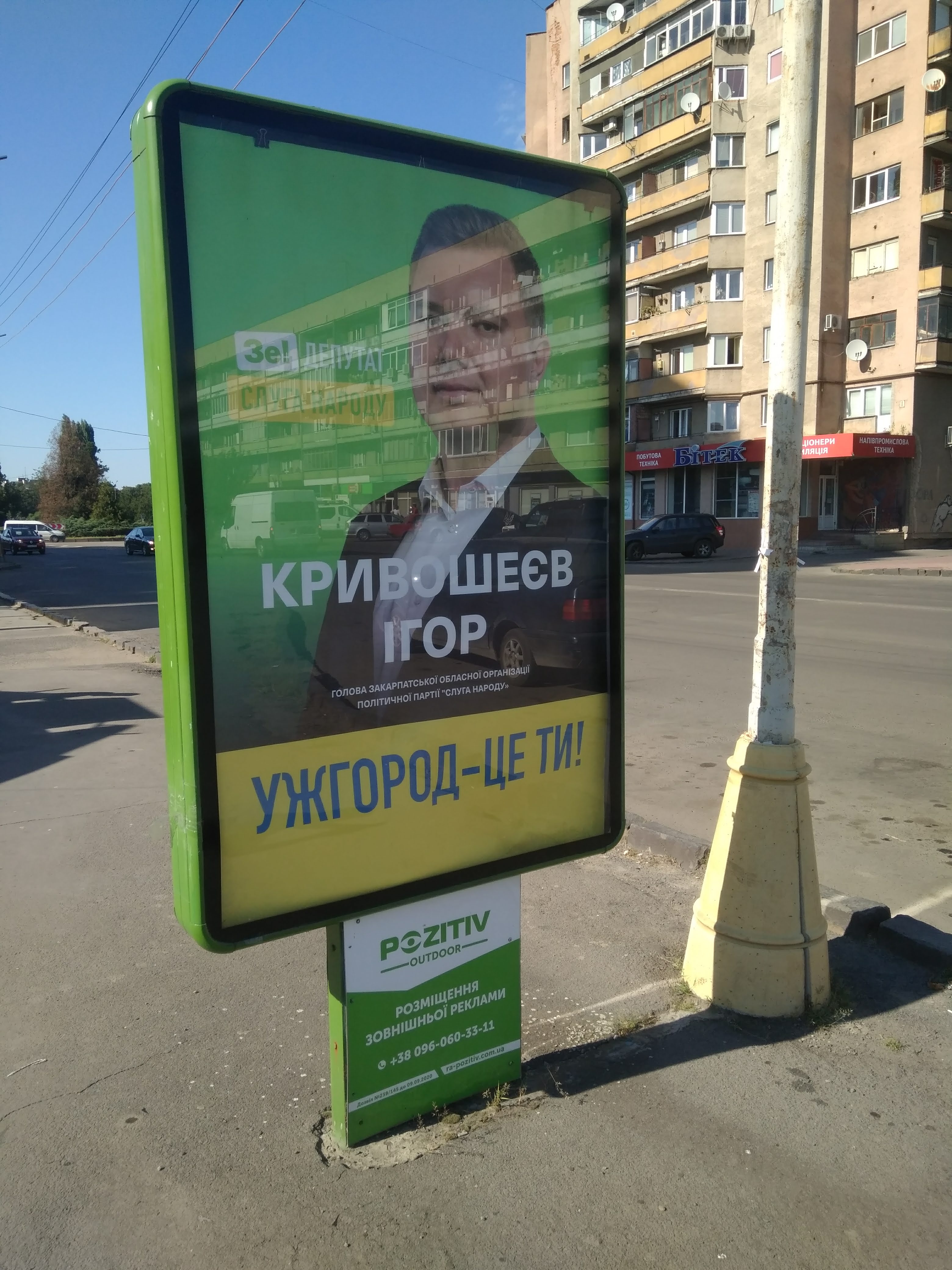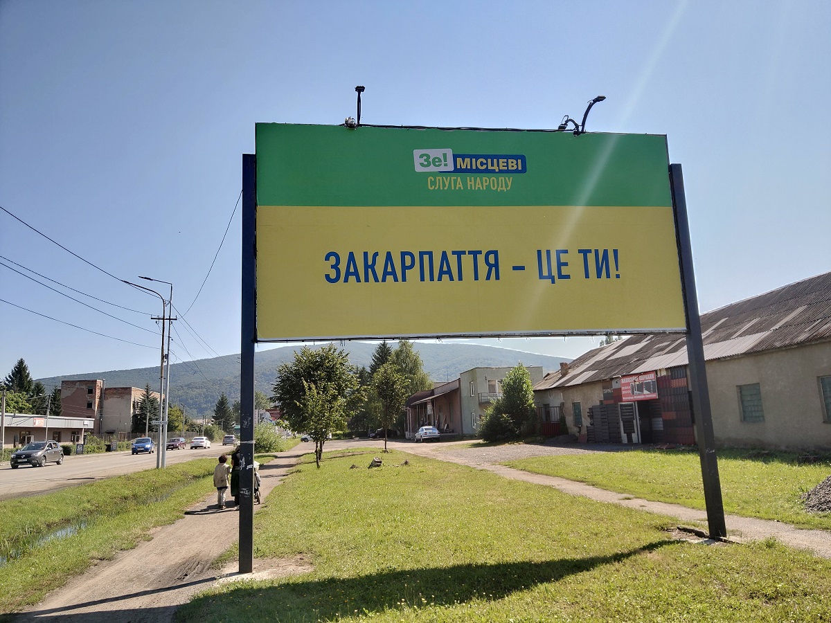 У деяких містах Закарпаття є білборди «Слуги народу» із текстом «Виноградів – це ти», «Україна – це ти», «Тячів – це ти», «Закарпаття – це ти», «Зе! Місцеві. Слуга народу».