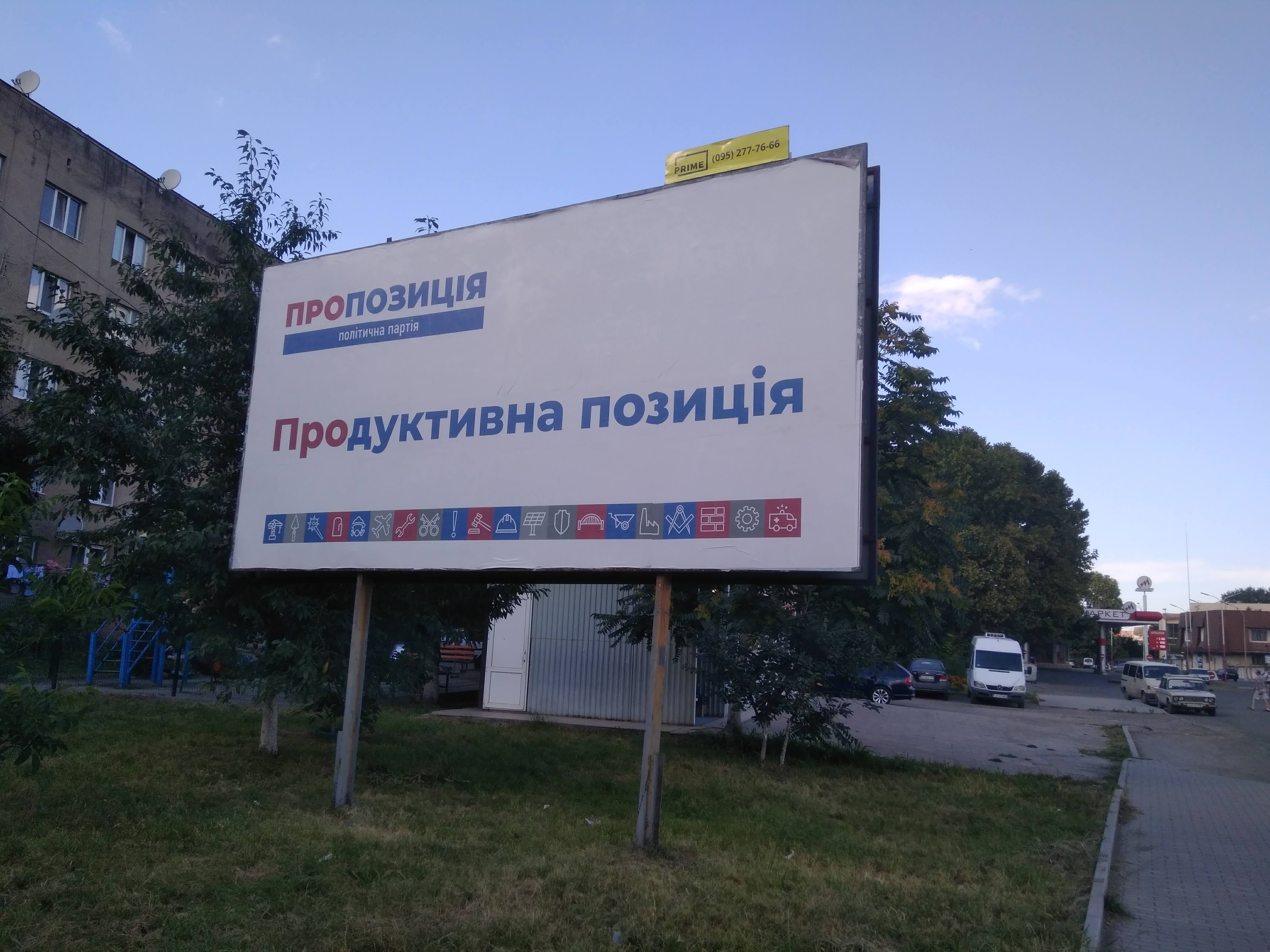 Крім цього, в обласному центрі Закарпаття з’явилися борди політичної сили «Перемога Пальчевського» та партії «Продуктивна позиція», «Європейська солідарність», «Слуга народу», «Рідне Закарпаття», «за майбутнє», «Команда Андрія Балоги».