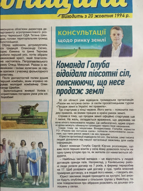 В означений період матеріали з ознаками джинси щодо Владислава Голуба з’являлись і в друкованих ЗМІ округу. До прикладу, в газеті “Канівчанка” №29 від 21 липня на передовиці розміщена стаття, в якій ідеться про те, що юристи ГО “Разом ми потужна сила” відвідали 50 сіл із консультаціями щодо старту продажу землі. Така ж стаття розміщена у 29-ому номері газети “Вісник Золотоніщини” від 22 липня. У попередньому номері цього ж тижневика, від 15 липня, на першій шпальті стаття, де Владислав Голуб наголошує на важливості вивчення іноземних мов. Більше за інших потенційних кандидатів Голуб представлений у зовнішній рекламі на окрузі.