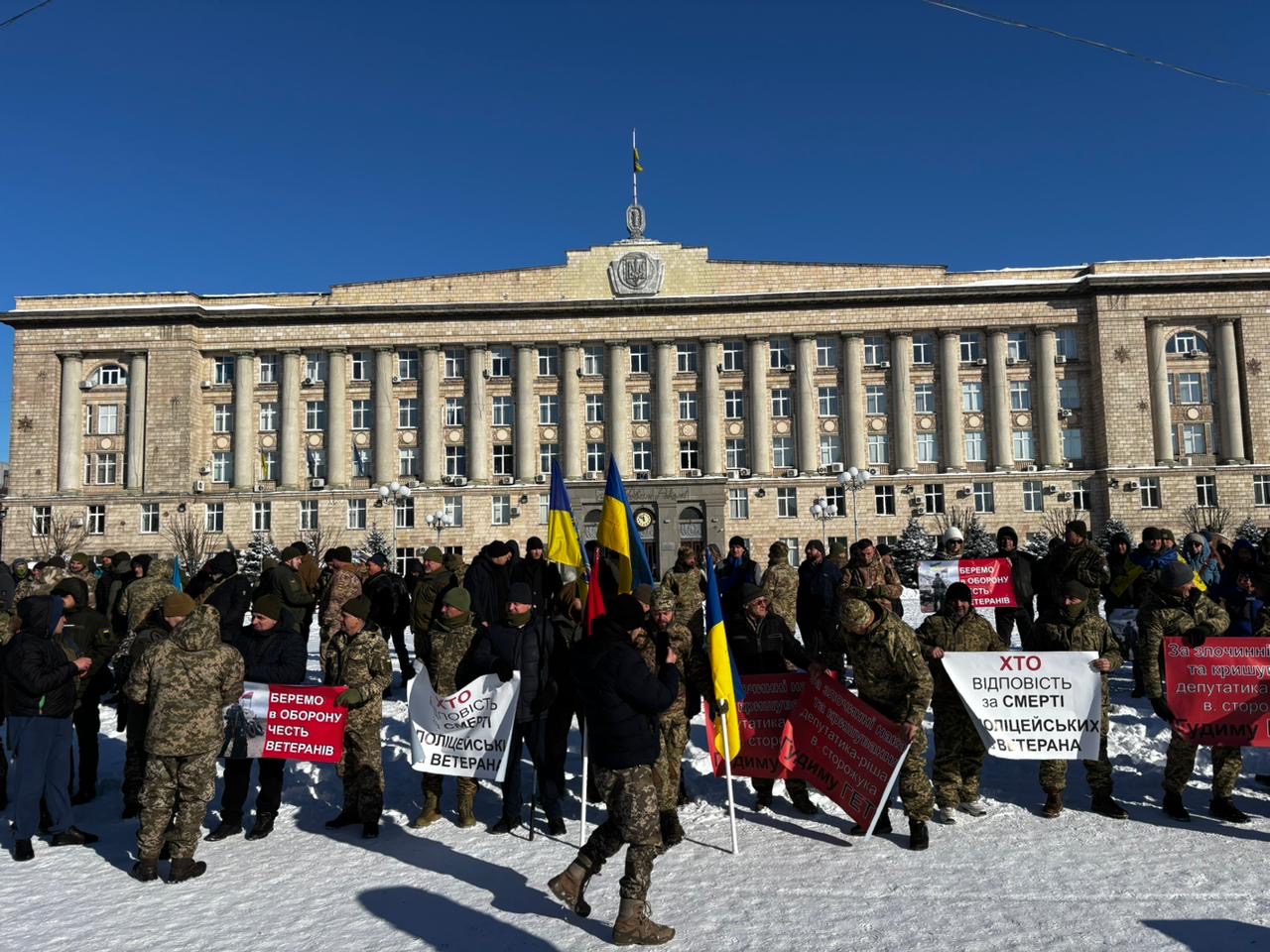 1 лютого у центрі Черкас відбулася масштабна акція протесту, організована ветеранською спільнотою. На Соборній площі зібралися десятки ветеранів війни і мешканців області, які вимагали прозорого й справедливого розслідування стрілянини. Серед вимог — звільнення керівника черкаської обласної поліції Олега Гудими.
