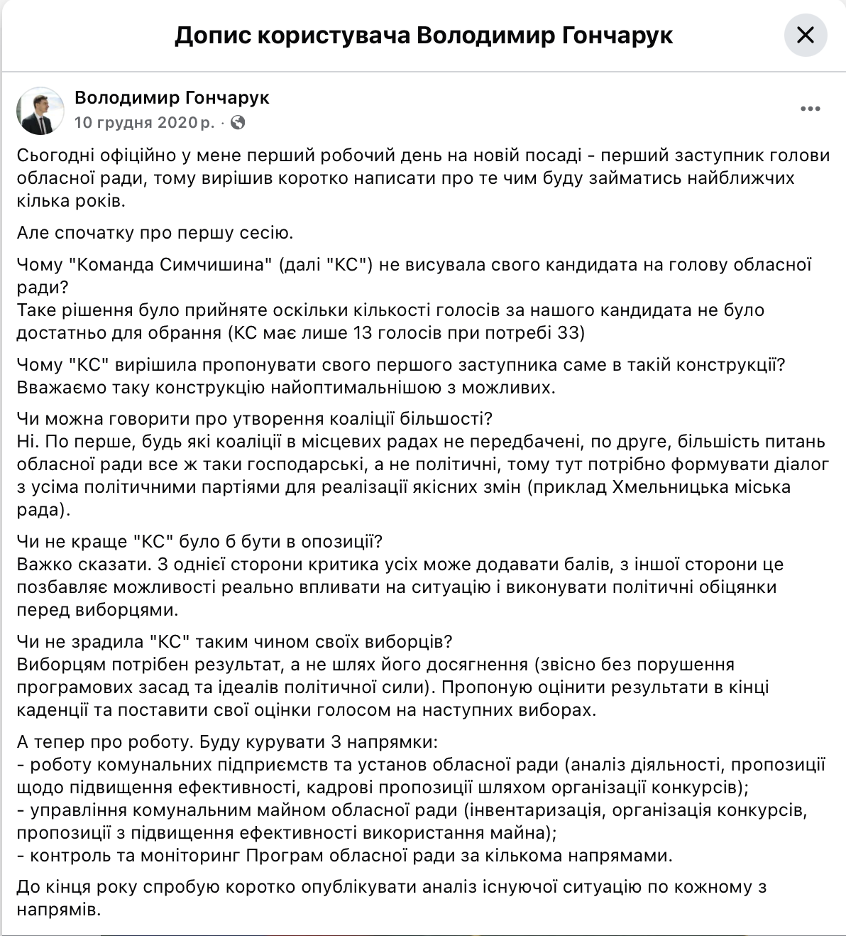 Водночас такий ресурс дає додаткові можливості для піару. Наприклад, на партійних сторінках повідомляють про проєкти, реалізовані за кошти місцевого бюджету, чи виділення фінансування на підтримку Сил Оборони. Те саме стосується й міського голови Хмельницького Олександра Симчишина і начальника ОВА Сергія Тюріна, в чиїх соцмережах публікують, зокрема, дописи про передачу ними допомоги для захисників.