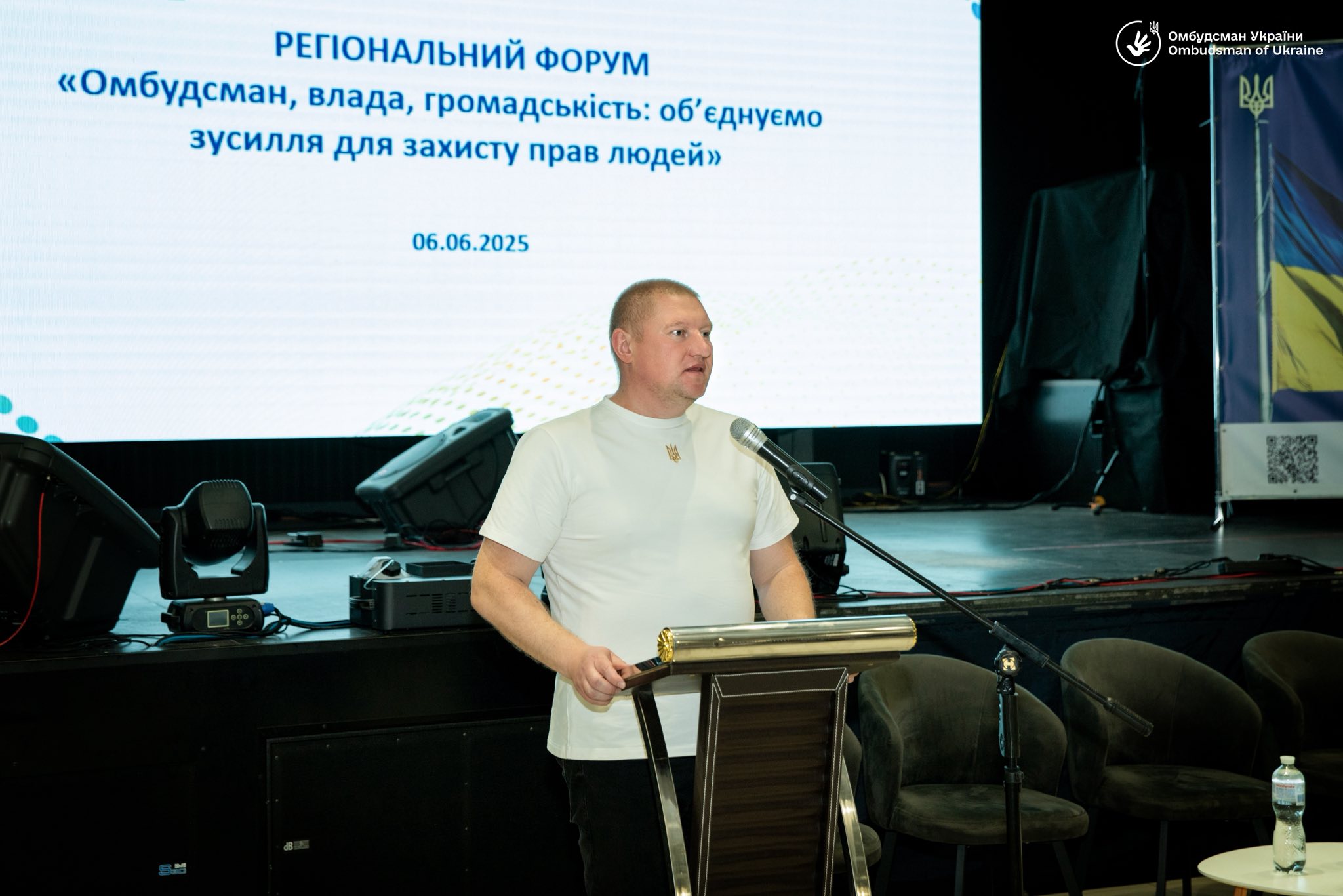 Фото: Народний депутат України Володимир Ватрас під час регіонального форуму в Хмельницькому. Джерело: Facebook-сторінка Регіонального представництва Уповноваженого ВРУ з прав людини у Хмельницькій області