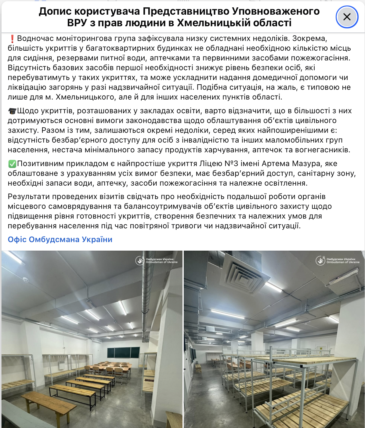 Скриншот із Facebook-сторінки Представництва Уповноваженого ВРУ з прав людини у Хмельницькій області