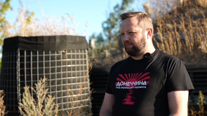 Володимир Когут показує фортифікаційні споруди у Святогірській громаді на Донеччині. Джерело: suspilne.media/poltava