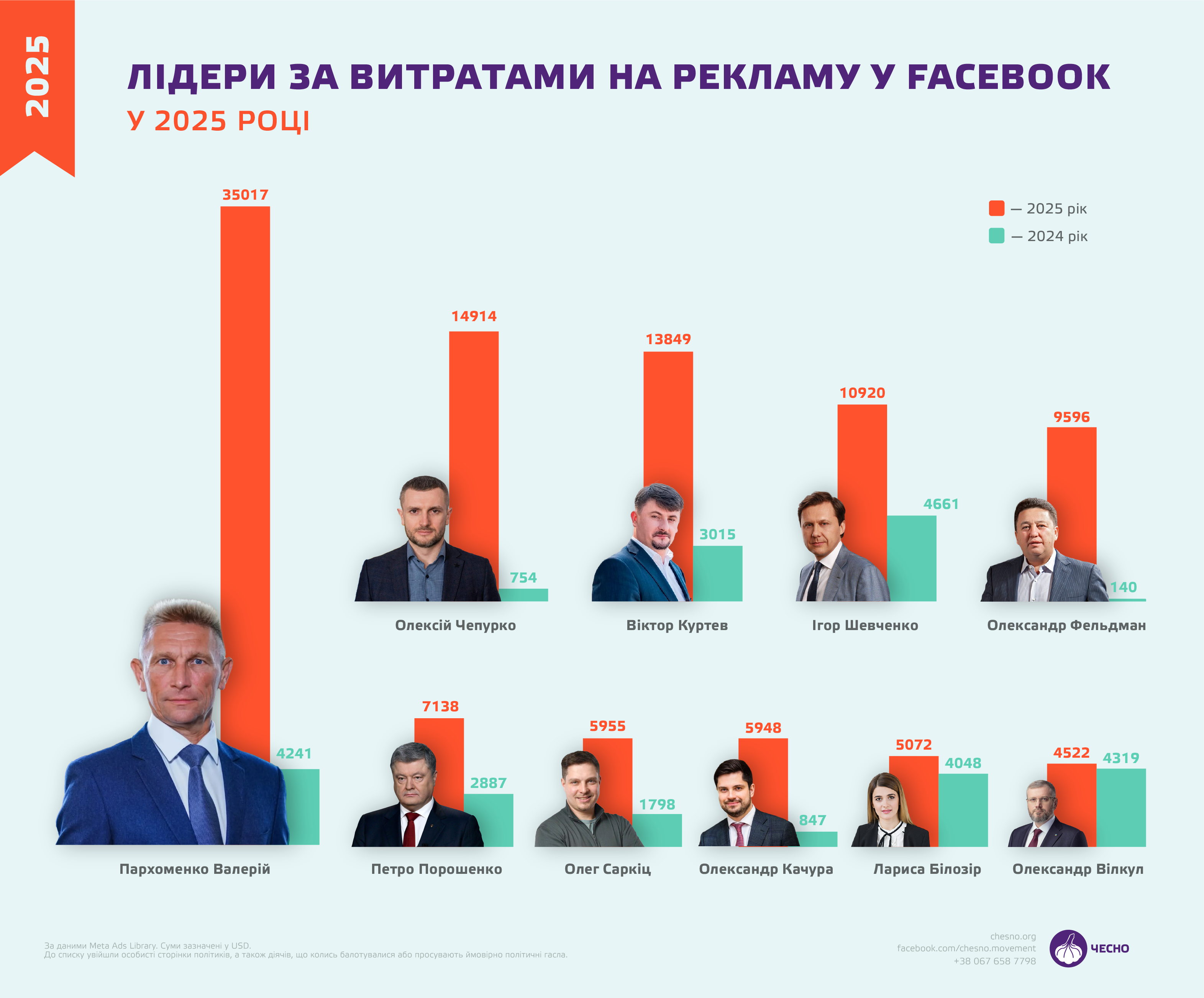 Лідери серед політиків за витратами на рекламу в соціальних мережах. Джерело: chesno.org