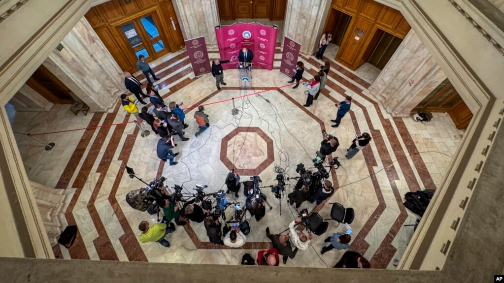 Голова Конституційного суду Румунії виступає із заявою для медіа після того, як суд затвердив перший тур президентських виборів. Джерело