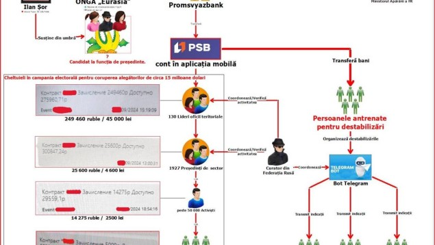Також у 2017 році Ілана Шора було засуджено до 7,5 років позбавлення волі за шахрайство, зловживання довірою та відмивання коштів (п. 15, 33). Попри заборону на виїзд за кордон, у 2019 році він поїхав до Ізраїлю, а в 2023-му був засуджений до позбавлення волі на 15 років (п. 37). На парламентських виборах 2020 року партія “ШОР” організувала перевезення виборців (п. 19), а після повномасштабної російської агресії проти України провела низку протестів біля державних установ — тоді було виявлено кошти, призначені для оплати мітингувальникам (п. 25, 26), у розмірах понад 1,5 млн та 800 тис. леїв.