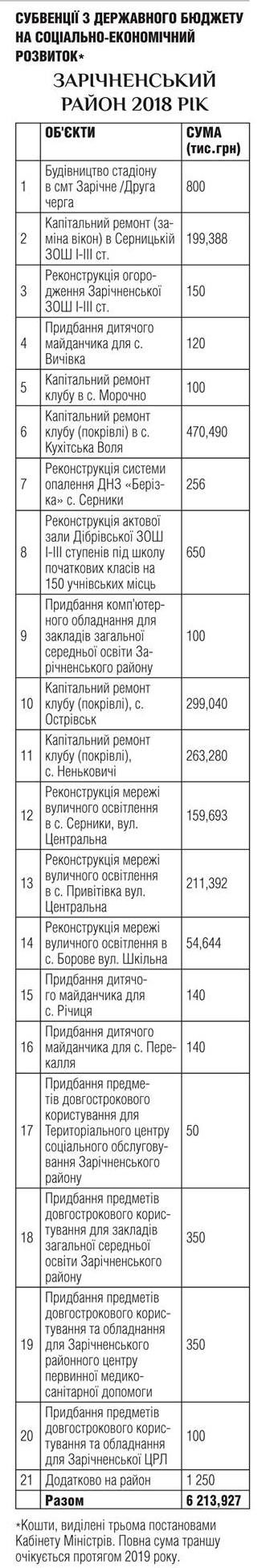 - «Вихованці відділення важкої атлетики Здолбунівської районної ДЮСШ продемонстрували нардепу зняття з новою професійною штангою, також придбаною коштом згаданої субвенції за його сприяння. На придбання спортивного інвентарю було спрямовано 100000 грн.»