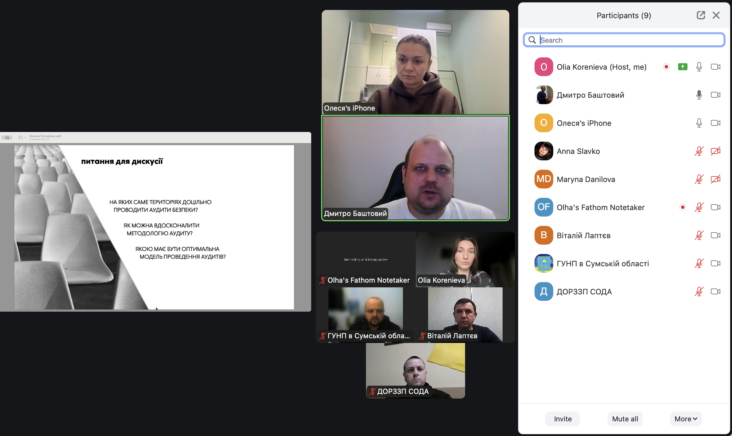 Також вона поділилась своїми враженнями щодо аудиту, зазначивши, що враховуючи безпекову ситуацію наразі велика кількість громад Сумської області, де ведуться бойові дії, не зможуть пройти аудит: «Як людина, яка їздить в 10-кілометровій зоні вздовж кордону, то жодна із громад, міста, такі як Білопілля, Ворожба, Середина Буда, то вони, це жодне місто, не пройде цього аудиту».
