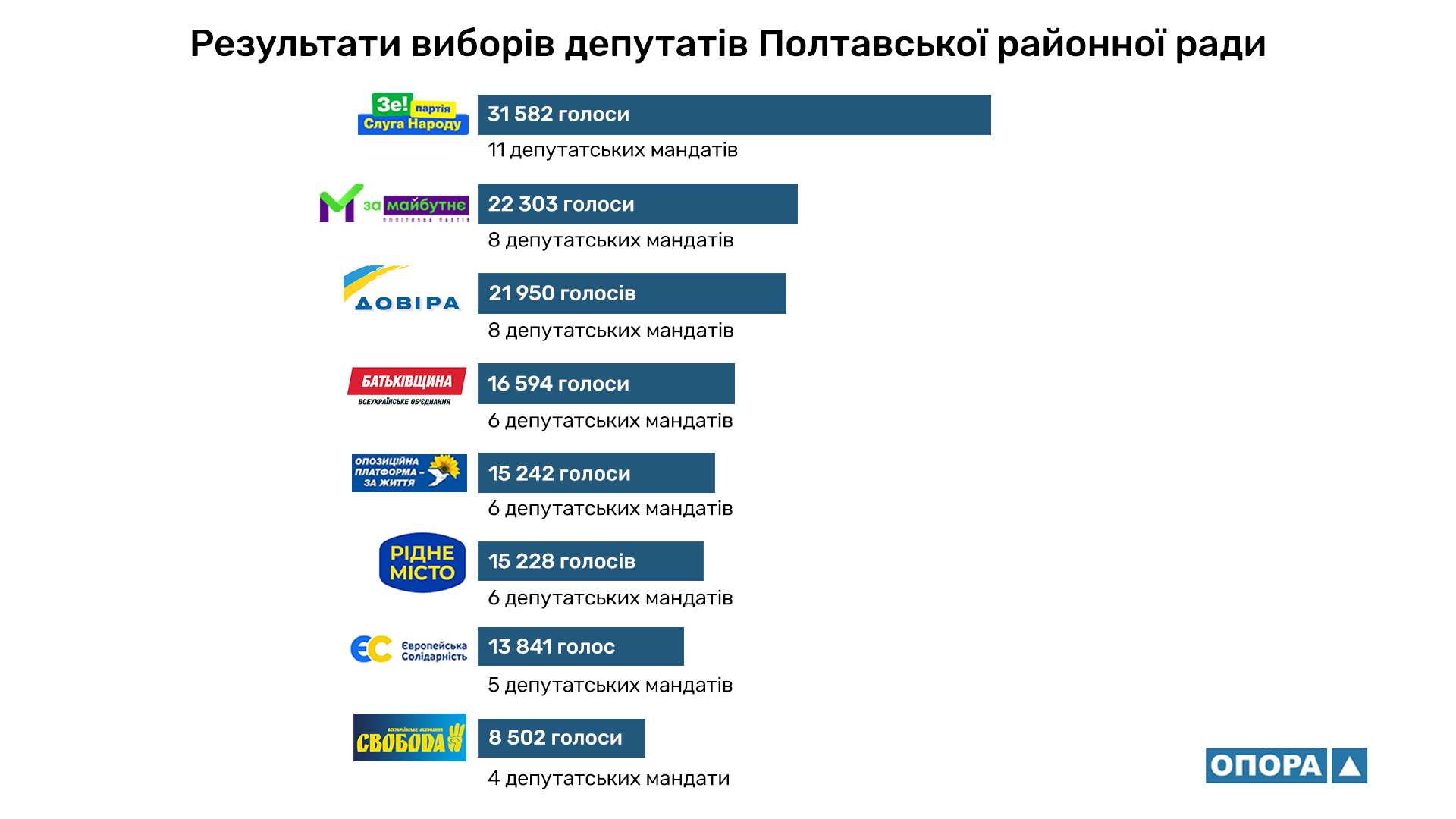 - «Слуга народу» — 31582 голоси (11 мандатів);