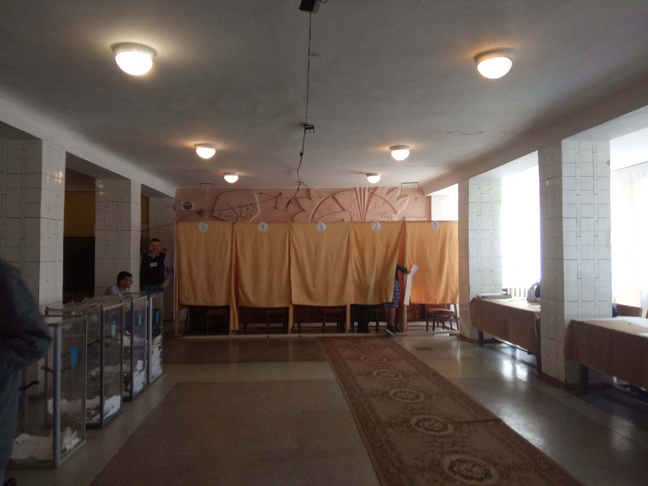 Згідно із частиною 3 статті 74 Закону України «Про вибори Президента України» приміщення для голосування повинно бути обладнане достатньою кількістю кабін (кімнат) для таємного голосування. Для малих виборчих дільниць кількість таких кабін (кімнат) повинна бути не менше двох, для середніх - не менше чотирьох, для великих - не менше шести. Розміщення обладнання у приміщенні для голосування планується таким чином, щоб місця видачі виборчих бюлетенів, вхід і вихід з кабін (кімнат) для таємного голосування, виборчі скриньки були у полі зору членів дільничної виборчої комісії та осіб, які відповідно до цього Закону мають право бути присутніми в приміщенні для голосування.