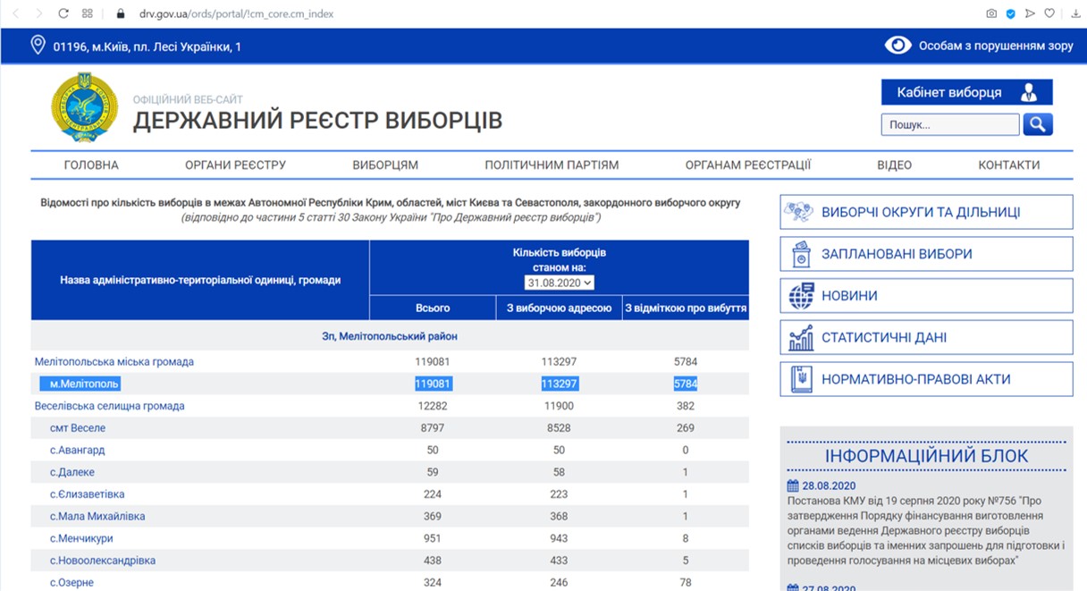 Відповідно до Виборчого законодавства кількість виборців у м. Мелітополь складає 119 тисяч 81 особу. Ця цифра є значно вищою за ту, що вказана у виборчому законодавстві.