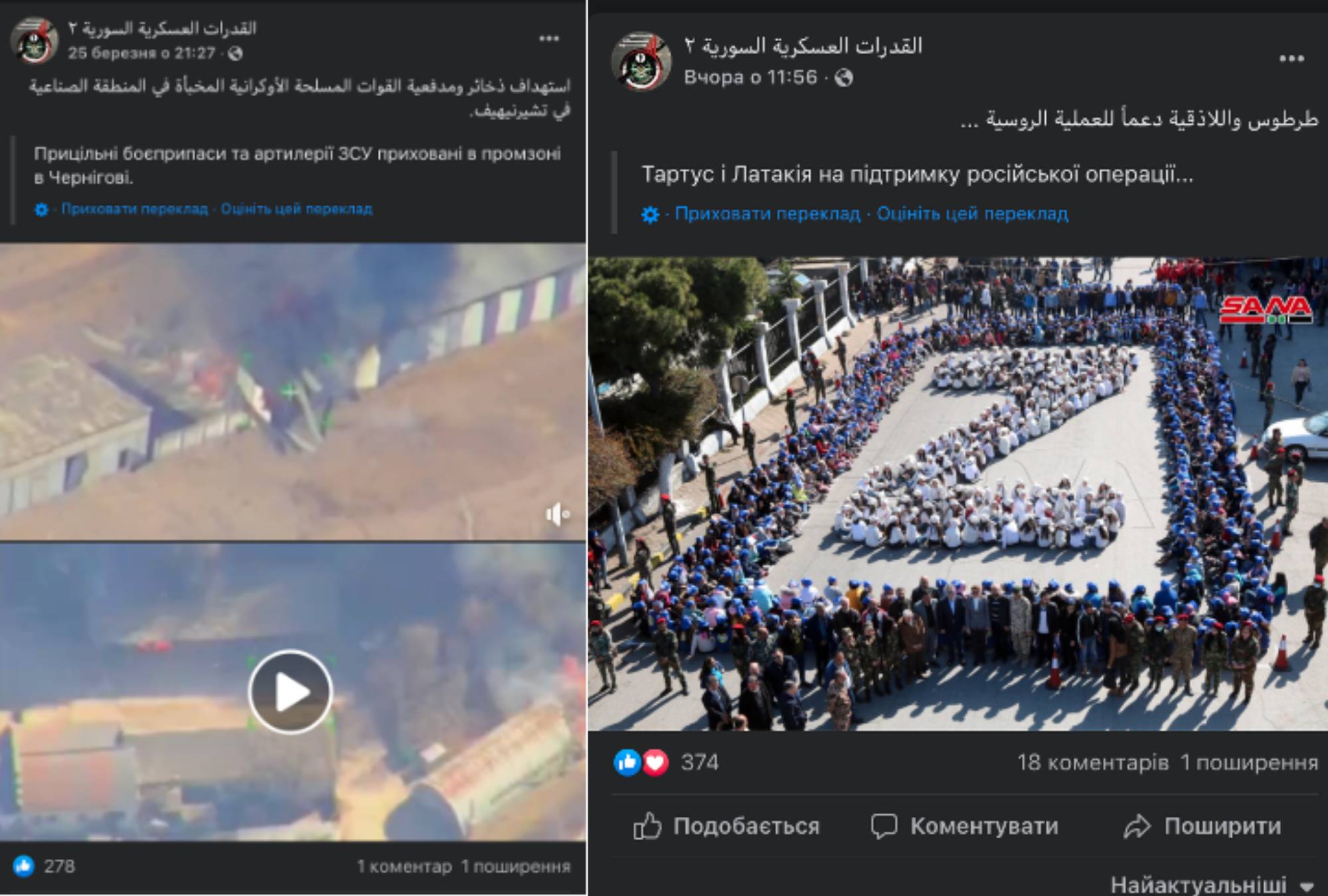 Наступна сторінка — القدرات العسكرية السورية ٢ (у перекладі з арабської “Сирійські воєнні можливості”) — адмініструється з Сирії. Медіа активно підтримує росію і транслює російську дезінформацію від початку повномасштабної російсько-Української війни.