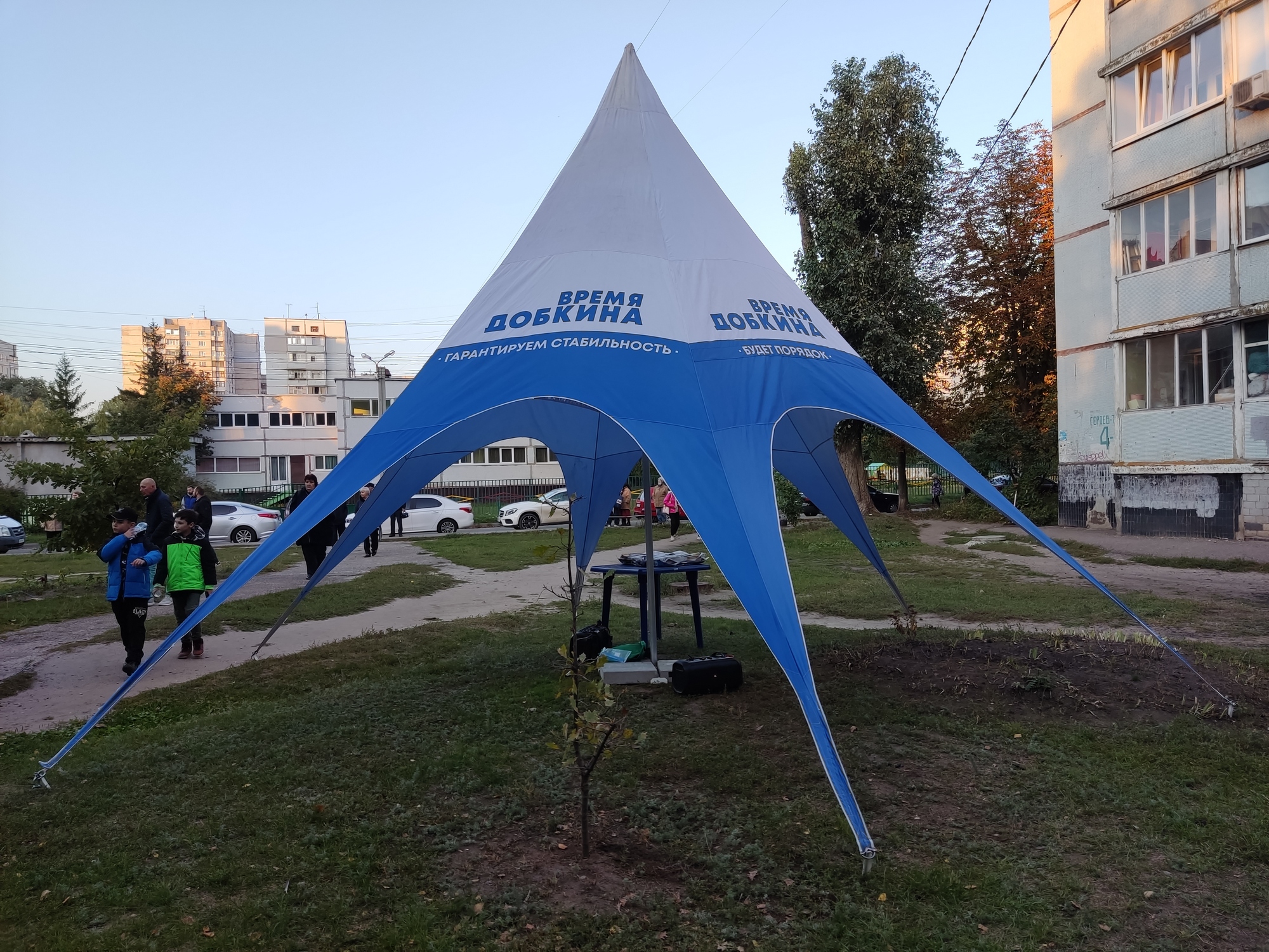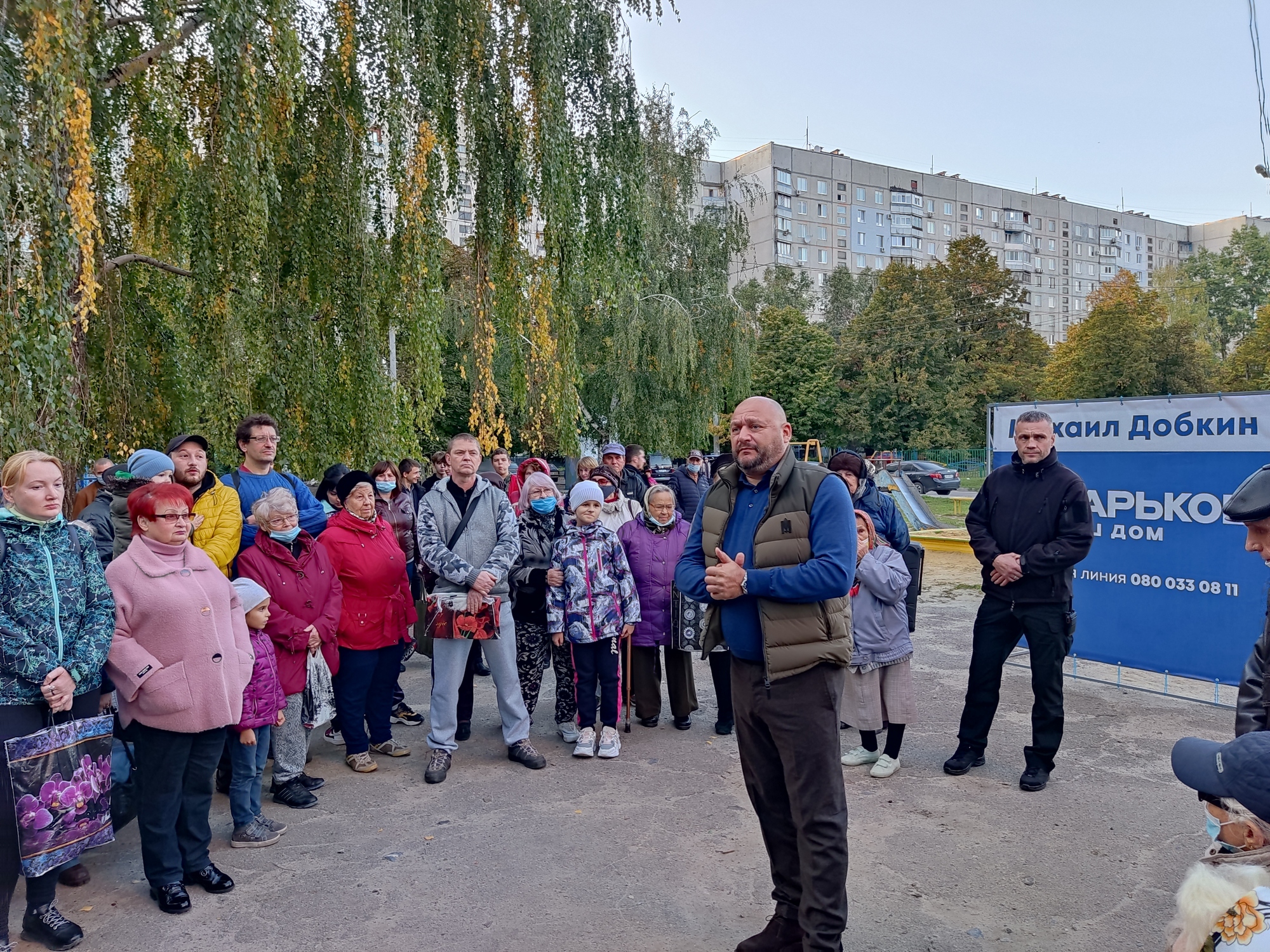 Добкін зараз є одним з найактивніших кандидатів. Основою агітаційної діяльності кандидата є проведення безпосередніх зустрічей із виборцями у різних куточках міста. На користь кандидата у подвір’ях будинків розташовуються брендовані агітаційні намети, в яких аніматори розважають дітей.