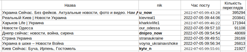 Ось табличка із кількостями переглядів на 20.00 і часом публікації.