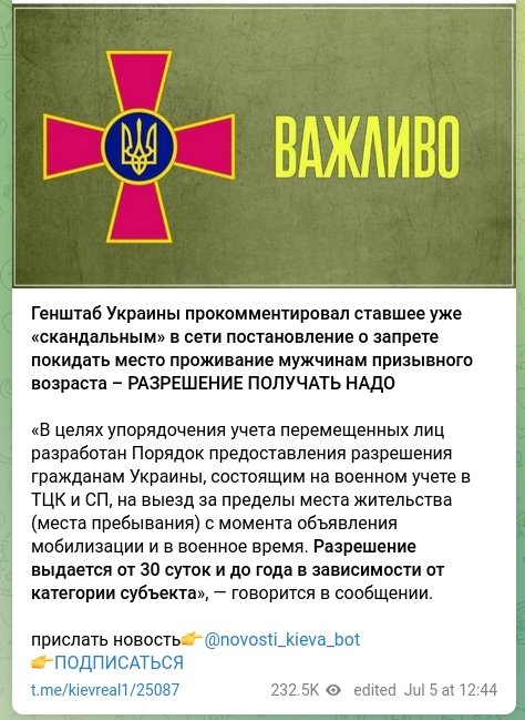 Самі ж пости виглядають приблизно так. Ось перший із них, за сьогоднішній день він став одним із найпопулярнішим, якщо відкинути канал "ТРУХА".