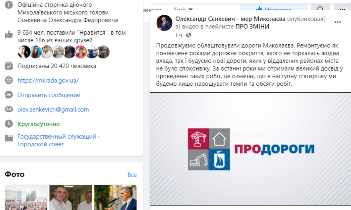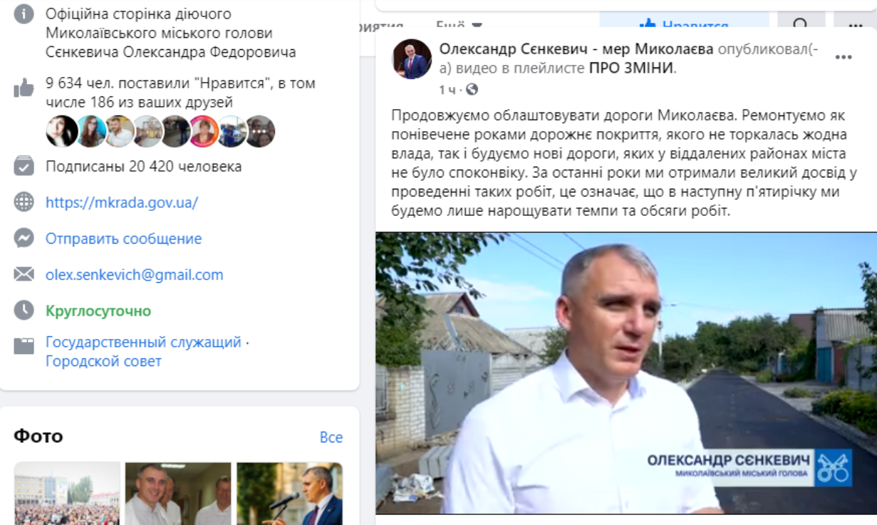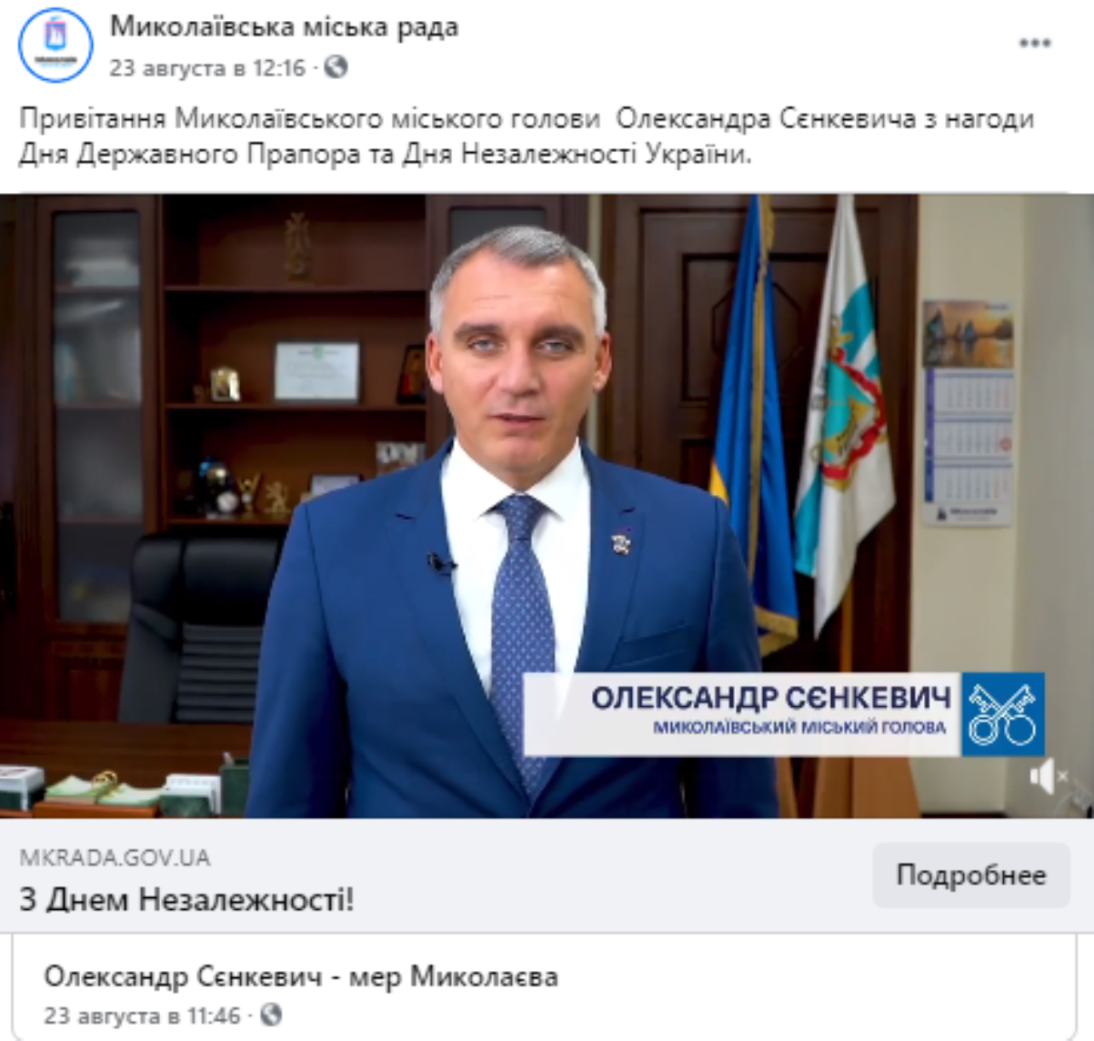 Але чи повинен дотримуватись політичної нейтральності Миколаївський міський голова Олександр Сєнкевич? Так, при інформуванні про свою діяльність як посадової особи на власній сторінці у Фейсбук він застосовує елементи партійної символіки партії «Пропозиція». А в публікаціях його онлайн-звітів використовується частина назви партії, що виділяється для привернення уваги. Наприклад, ПРО ЗМІНИ, ПРОДОРОГИ, ПРОМИКОЛАЇВ. Використання елементу партійної символіки було зафіксовано й під час привітання Миколаївського міського голови з Днем Незалежності 24 серпня на офіційній сторінці Миколаївської міської ради у Фейсбук. Крім того, проводячи свої онлайн-зустрічі з мешканцями міста як посадова особа, 18 серпня Олександр Сєнкевич визнав, що ці ефіри мають передвиборче спрямування. А 25 серпня у вечірньому ефірі на офіційній сторінці міського голови у Фейсбук, Олександр Сєнкевич у відповідь на питання, від якої партії він буде балотуватися, розповів про партію «Пропозиція» та закликав доєднуватися до її лав. Тобто прослідковується явна політична спрямованість міського голови. Міський голова – це виборна посада, і на нього не розповсюджується Закон України «Про запобігання корупції». В той же час є наказ НАДС «Про затвердження загальних правил етичної поведінки державних службовців та посадових осіб місцевого самоврядування». У розділі ІІІ Наказу зазначено, що «державному службовцю та посадовій особі місцевого самоврядування заборонено у будь-який спосіб використовувати своє службове становище в політичних цілях». Але, зважаючи що міський голова − це політична посада, дії Олександра Сєнкевича можуть мати ознаки саме використання адміністративного ресурсу з порушенням міжнародних стандартів.