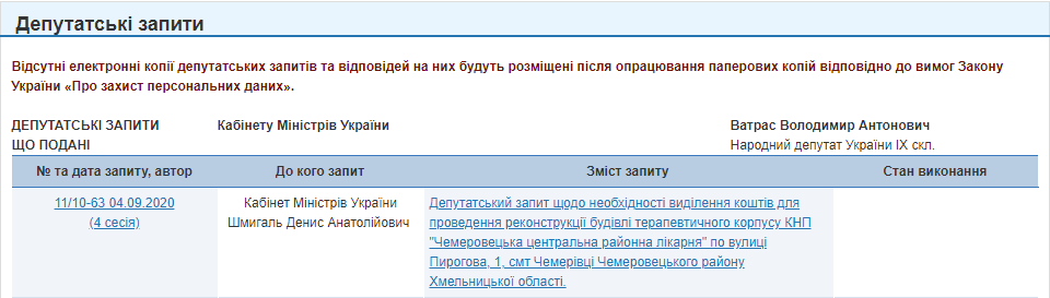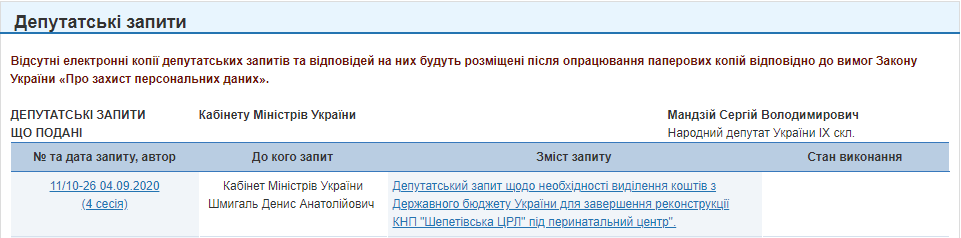 Проте в дописі про виділення грошей на ремонт лікарень, подаючи інформацію як довершений факт, не роз’яснюють, що оголошення запитів на засіданні Верховної Ради не означає, що кошти обов’язково виділять. Наразі, як свідчать дані на сайті ВРУ, невідомо ані про стан виконання запитів Сергія Мандзія та Володимира Ватраса, ані про відповіді Кабінету Міністрів України на ці запити.